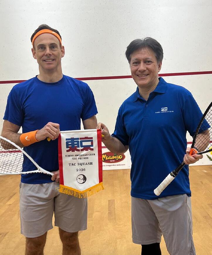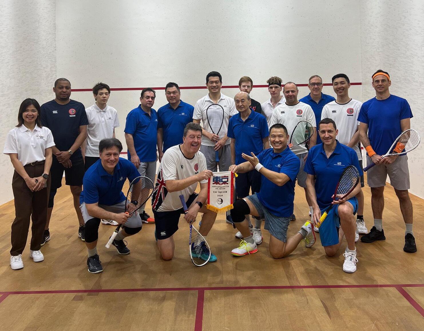 Saturday afternoon saw the team assembling at the American Club, with Yomi miraculously recovered despite (or perhaps because of?) a long night in Roppongi and able to play. He, captain Andrew, star player James Buchanan and Stuart Bailey played almost non-stop and once again almost won the day, but the TAC team just came out ahead in the final reckoning. Despite the results, it had been a second day of great fun on court and in the bar afterwards. You’d have thought that after all that sport, an early night would have been in order, but somehow the team found the energy for another huge one in Roppongi. A truly impressive all-round sporting performance.