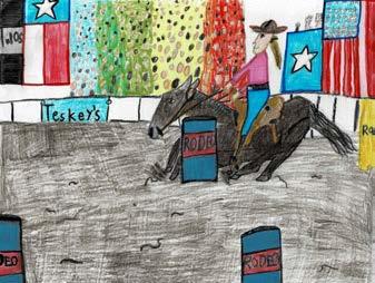 The Rodeo is one of the cultures of Texas! I do a lot of things with Rodeo! And I’m going to tell you something. In my school we did a Rodeo art, it was about a chicken drawn and colored! And