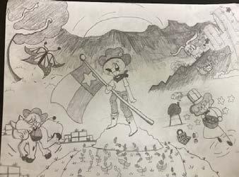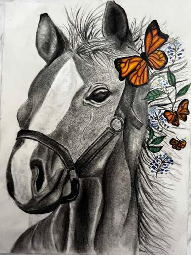 ARTIST STATEMENT: The purpose of my artwork was to include a representation of Native Americans from the West. In my opinion, a majority of western art has highlighted a limited representation of all heritages that depict the western landscapes. Primarily showcasing cowboys and cattle and very few indigenous/ minority cultures. My artwork is a very clear representation of my point of view. I want more inclusivity of people of color in the school system and educational environments to ensure more representation of minorities. I want a future where people aren’t discriminated against just because their culture is different or have a dark skin tone. Representation plays a big part in understanding different cultures and educating everyone. This artwork is my contribution to turning my wish into a reality, one baby step at a time.