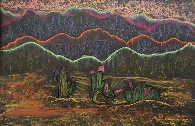 relationship with the El Paso/Tx landscape, especially in the form of ocotillos, which are beautiful but dangerous, and the incredible El Paso sunsets, which the background mimics.