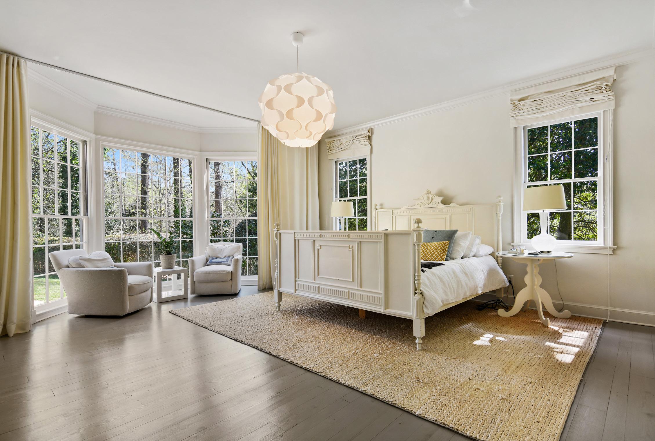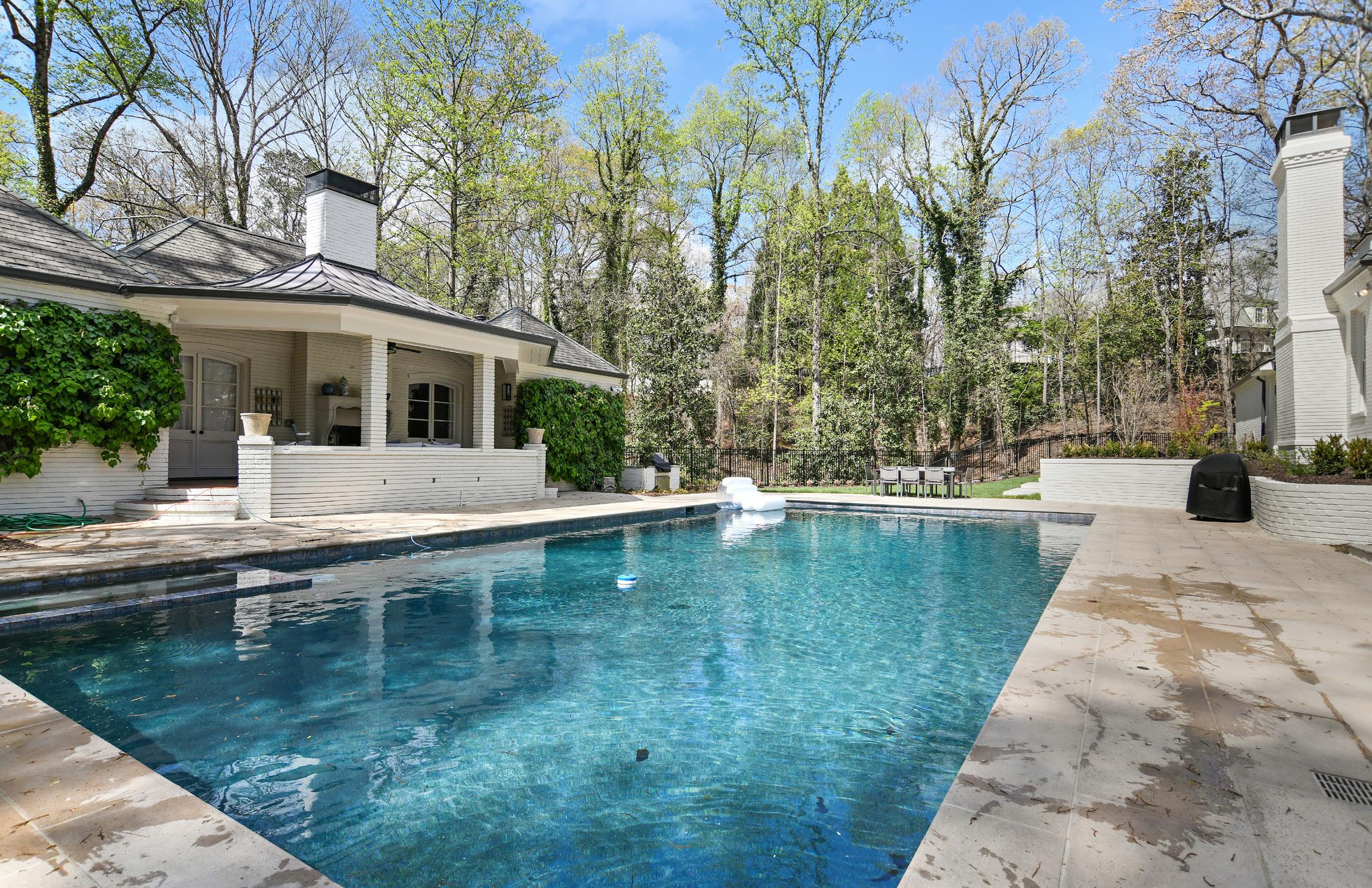 Gorgeous California style home. Built around a large stone patio and pool with french doors all around the house opening to the patio. Set in the center of 3.8 wooded acres, gated and private. Luxurious master suite, multiple large living spaces. Floor to ceiling windows flood the house with light. The pool house includes a separate apartment. There is a garage and auto court parking for multiple cars. Come home, close the gate and relax in a lovely, private home, just for you.