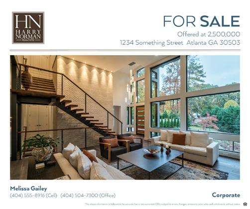 The above information is believed to be accurate but not warranted. Offer subject to errors, changes, omissions, prior sales and withdrawals without notice. Equal Housing Opportunity. 532 East Paces Ferry Road Atlanta, GA 30305 404.233.4142 | HarryNorman.com