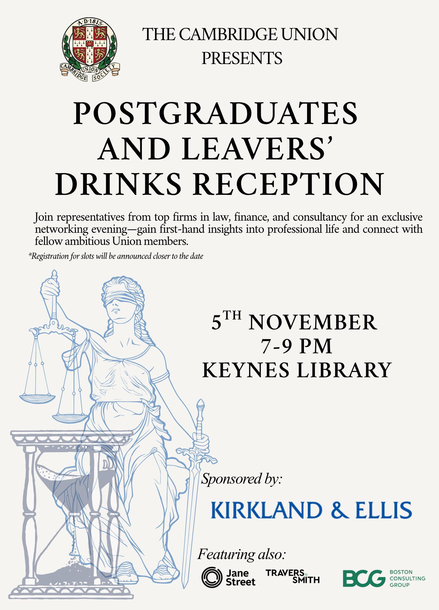 Throughout Michaelmas, our members can also ballot to meet individual speakers at the pre-event drinks receptions! Keep your eyes on our social media pages, Facebook members’ page, and weekly members’ email for details on speaker ballots throughout the term.