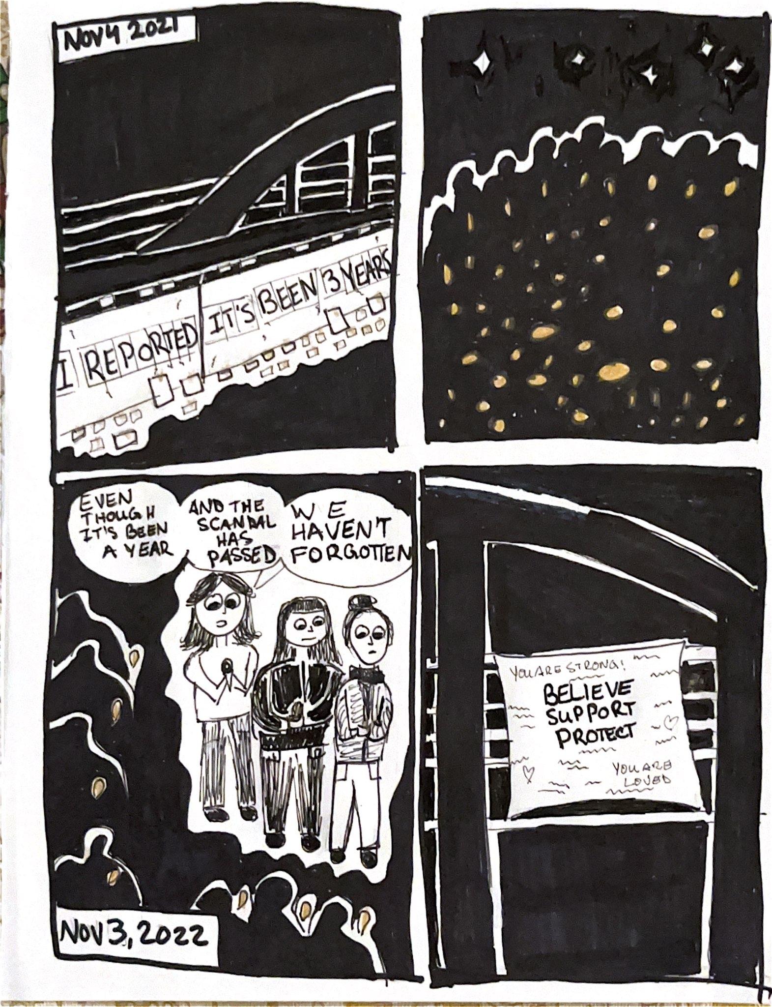 On Nov. 3, a vigil was held to remember the message on the bridge in 2021. This will lead into a Take Back the Night march on Nov. 10 and the 12 Days of Action Against Gender-Based Violence. These will hopefully be the first of many events that continue to enact change in the culture and systems that tolerate sexual violence.