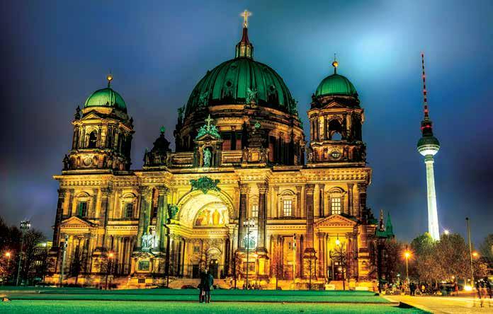 Photo of the Berlin Cathedral with Fernsehturm in background: Jovannig, Adobe Stock.