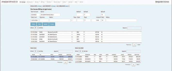Separation of sponsor and service user responsibilities permits unlimited sponsor/service user relationships and as any number of charge codes may be defined this allows complete flexibility of service user/sponsor /charge code definition