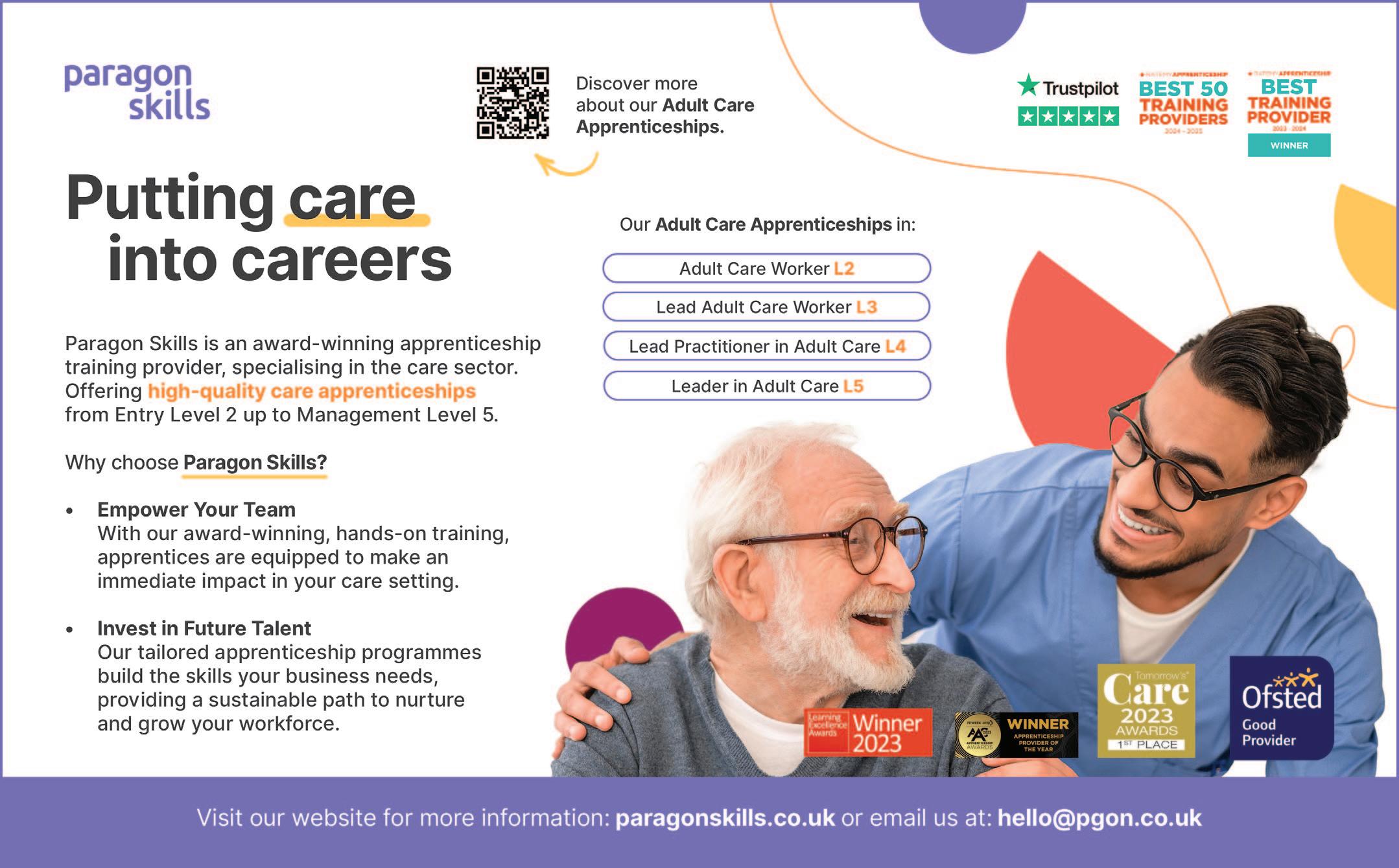 By focusing on continuous learning and leadership development, apprenticeships in adult care empower individuals to unlock their potential while ensuring high standards of care across the sector. For employers and care professionals alike, these programs are a cornerstone of growth, innovation, and excellence in the industry. Find out more about our apprenticeships on www.paragonskills.co.uk
