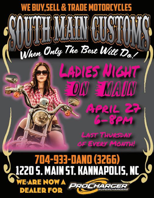 Check out Springers Bar on the cover of this month’s magazine. Springer’s is THE destination biker bar in Greensboro, NC and celebrate their anniversary in April. Swing by and hang out on their Tuesday Night Bike Night or check them out for a great weekend destination. Read all about the bar and their efforts to support the community on page 6!