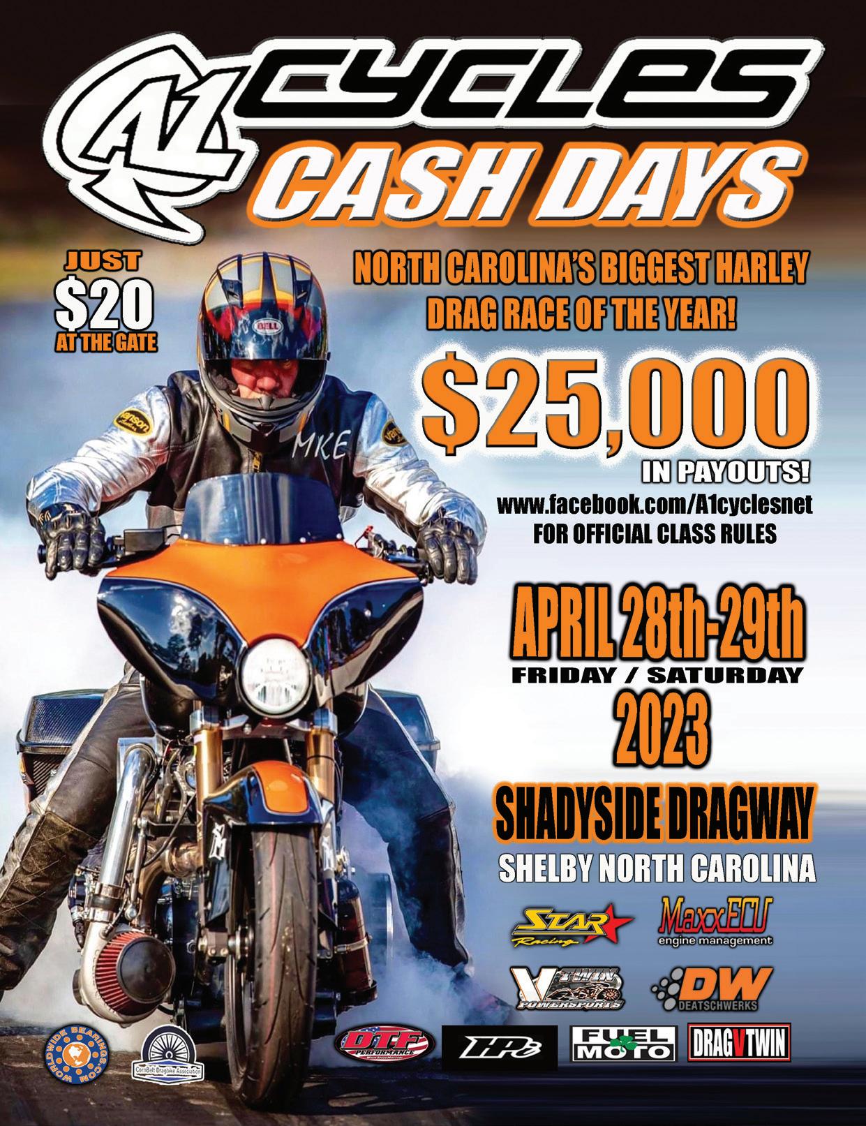 APR 14-15 ALL HARLEY WORLD SHOOTOUT Farmington Dragway, 2992 NC-801, Mocksville, NC. Track, 336-9983443 or Paul Watson, 336-479-2071