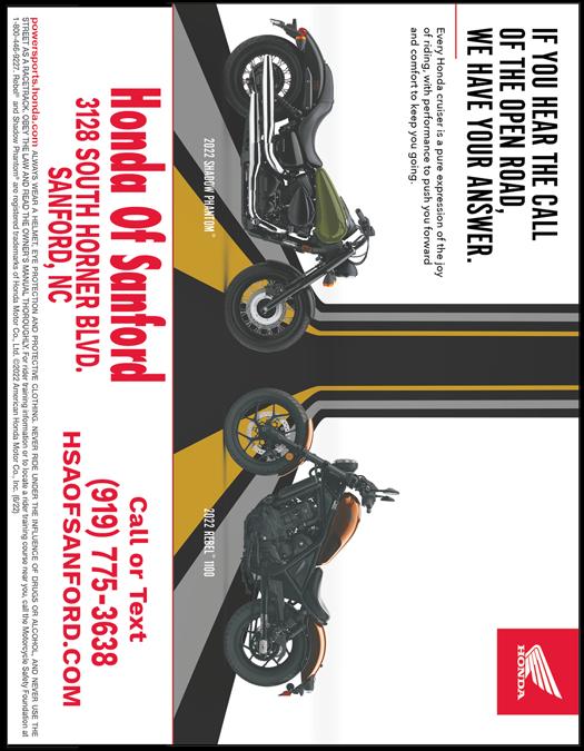 APR 21-22 COX’S HARLEY-DAVIDSON OF ASHEBORO DEMO DAYS 2795 NC Hwy 134, Asheboro, NC. www.coxsharley-davidson.com, 336-629-2415