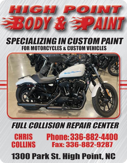 BIKE SHOW NIGHT Smokin’ HarleyDavidson 3441 Myer Lee Dr. WinstonSalem, NC. 5:30-8:30. No entry fee, Cash Prize, vendors, food, beer, music. 336-722-3106 www.smokinharley.com