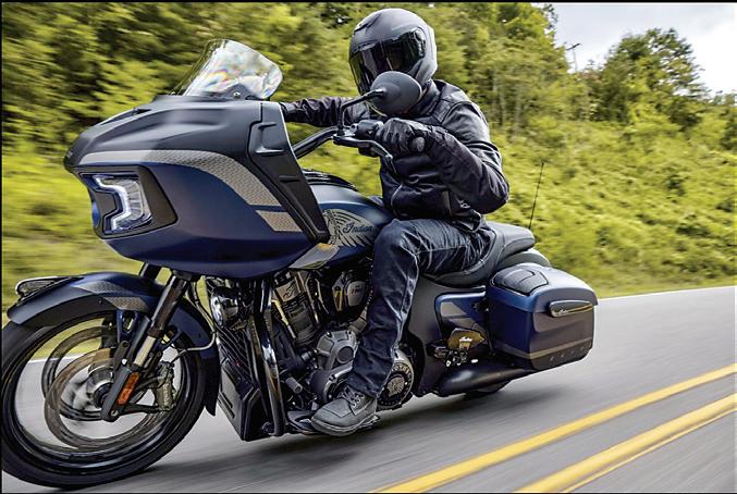 Across the line, Indian Motorcycle has introduced an array of new paint colors, including Sagebrush Smoke on Chief Dark Horse and Stryker Red Metallic on Scout Bobber Sixty, Chief Bobber and Roadmaster Limited models. Spirit Blue Metallic is a new color option on Chieftain Limited and Indian Pursuit models, while Titanium Smoke is introduced to Indian Challenger Dark Horse models. For a comprehensive view of the lineup’s new paint colors, please visit IndianMotorcycle. com.