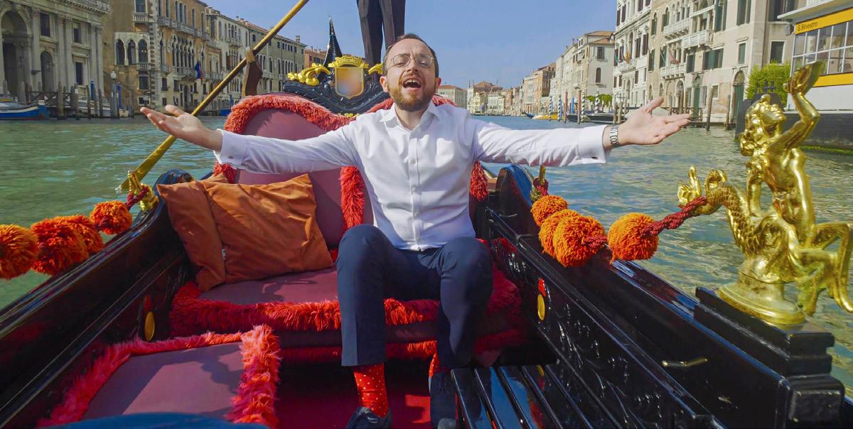 In the video, Leshes sings his way around the colorful canals — crooning while sitting in a gondola — and walking along the narrow streets. He’s joined by a trumpet player, while his daughter, Shira, dances and laughs with him as they sing about the old world changing into a new era.