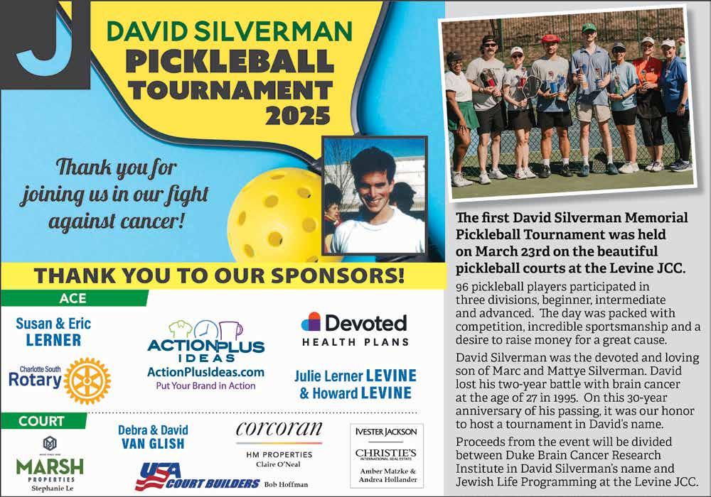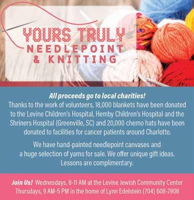 The CJN does not assume responsibility for the quality of kashruth of any product or service advertised. Publishing of a paid political advertisement does not constitute an endorsement of any candidate, political party or position by this newspaper, Jewish Federation of Greater Charlotte, or any of its employees. Articles submitted by individual agencies bearing their logo are reflective of the opinion of that agency.