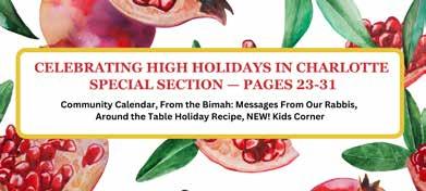 The CJN does not assume responsibility for the quality of kashruth of any product or service advertised. Publishing of a paid political advertisement does not constitute an endorsement of any candidate, political party or position by this newspaper, Jewish Federation of Greater Charlotte, or any of its employees. Articles submitted by individual agencies bearing their logo are reflective of the opinion of that agency.