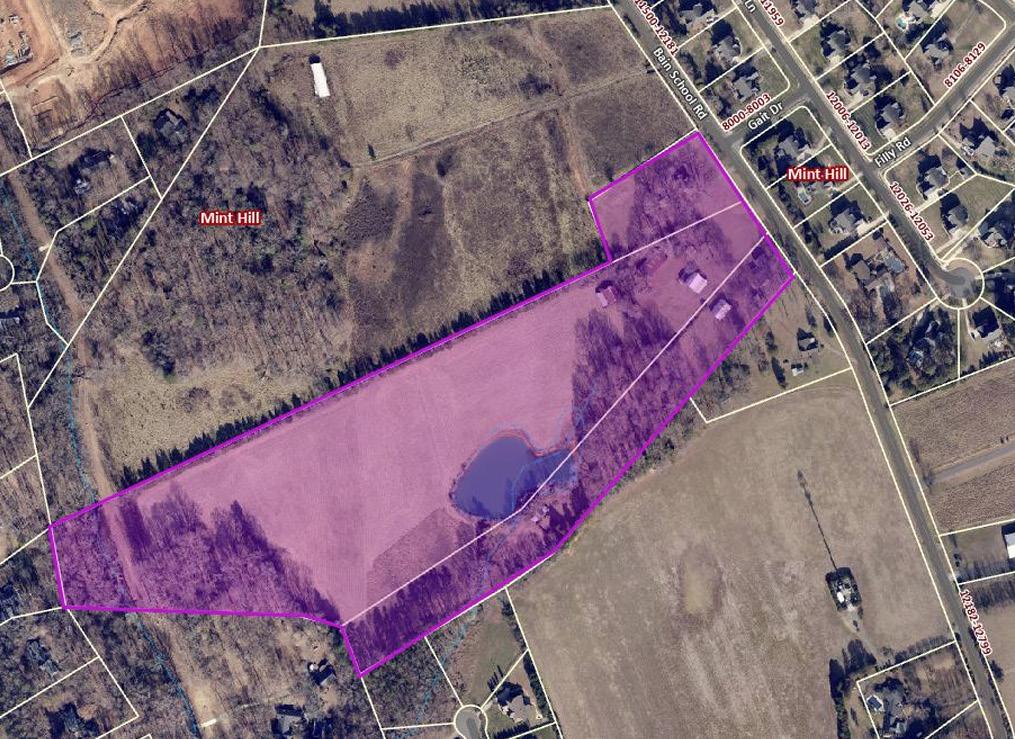 The area shaded in purple is the proposed site for Reynolds Farm. Photo courtesy of Town of Mint Hill