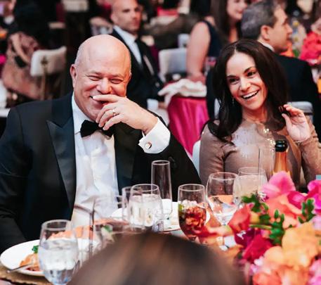 LEFT: Charlotte Mayor Vi Lyles shares a laugh with Eugene A. Woods, CEO of Advocate Health. MIDDLE: David and Nicole Tepper were recognized for their continued support of Atrium Health Levine Children’s Hospital. RIGHT: Actor Rob Lowe takes center stage with Luke Kuechly, who will be inducted into the Pro Football Hall of Fame in August. Photos courtesy of Atrium Health Foundation