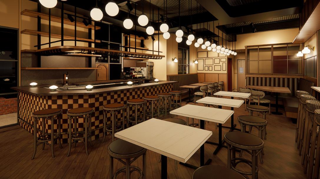 The inside will be refined with wood and marble appointments. The patio will be activated as a European-style outdoor café along the Rail Trail. At the center of the restaurant is an intimate pasta counter framing the open kitchen.