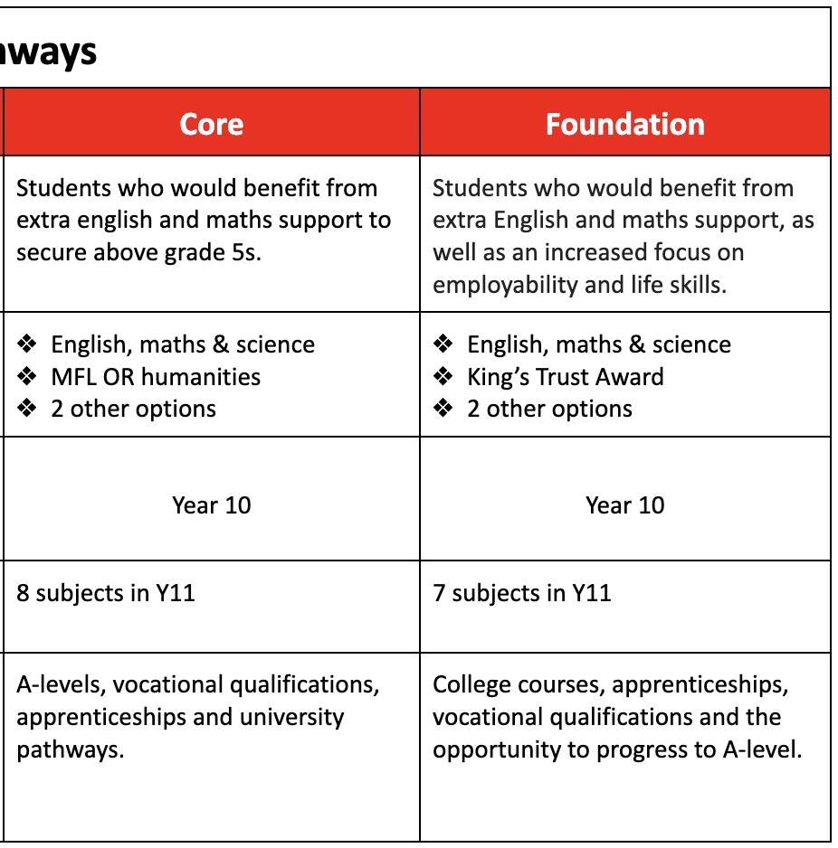 There is a lot of information on hand and expert advice available from our teachers over the coming weeks that will ensure that you understand the pathways and subjects on offer. We will support you to make decisions that will maximise your child’s achievement and engagement as they move into the next stage of their studies.