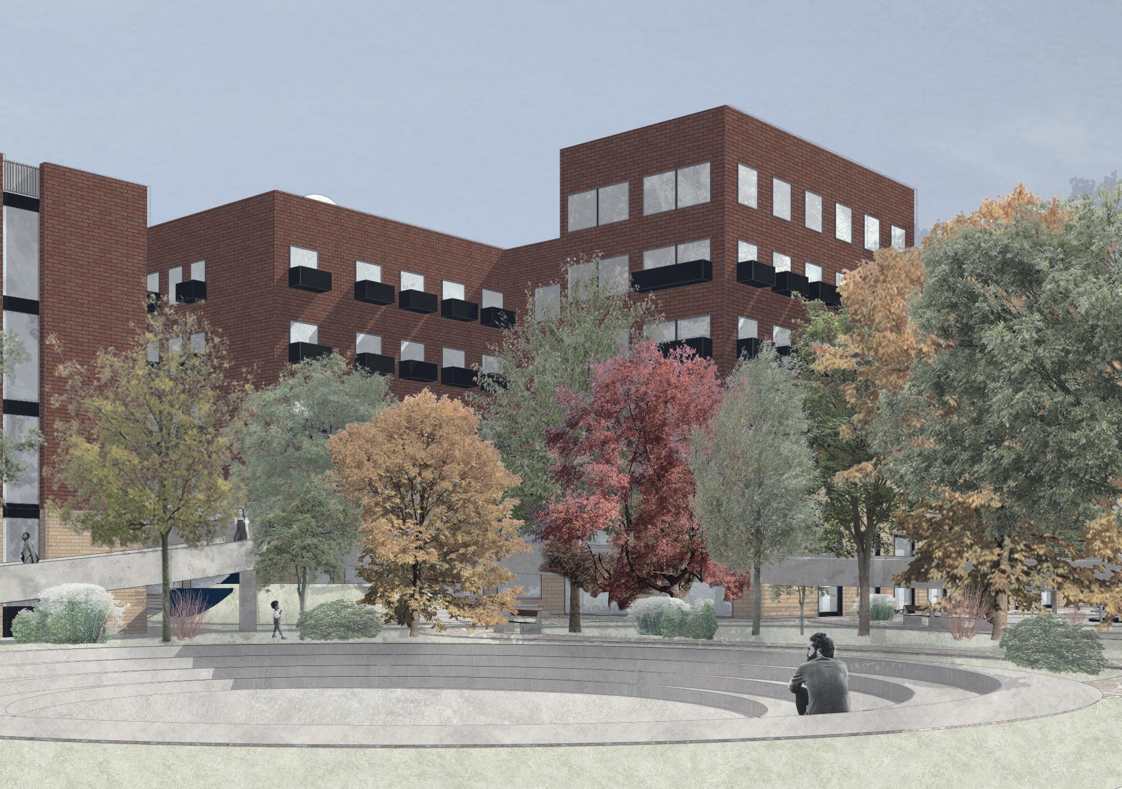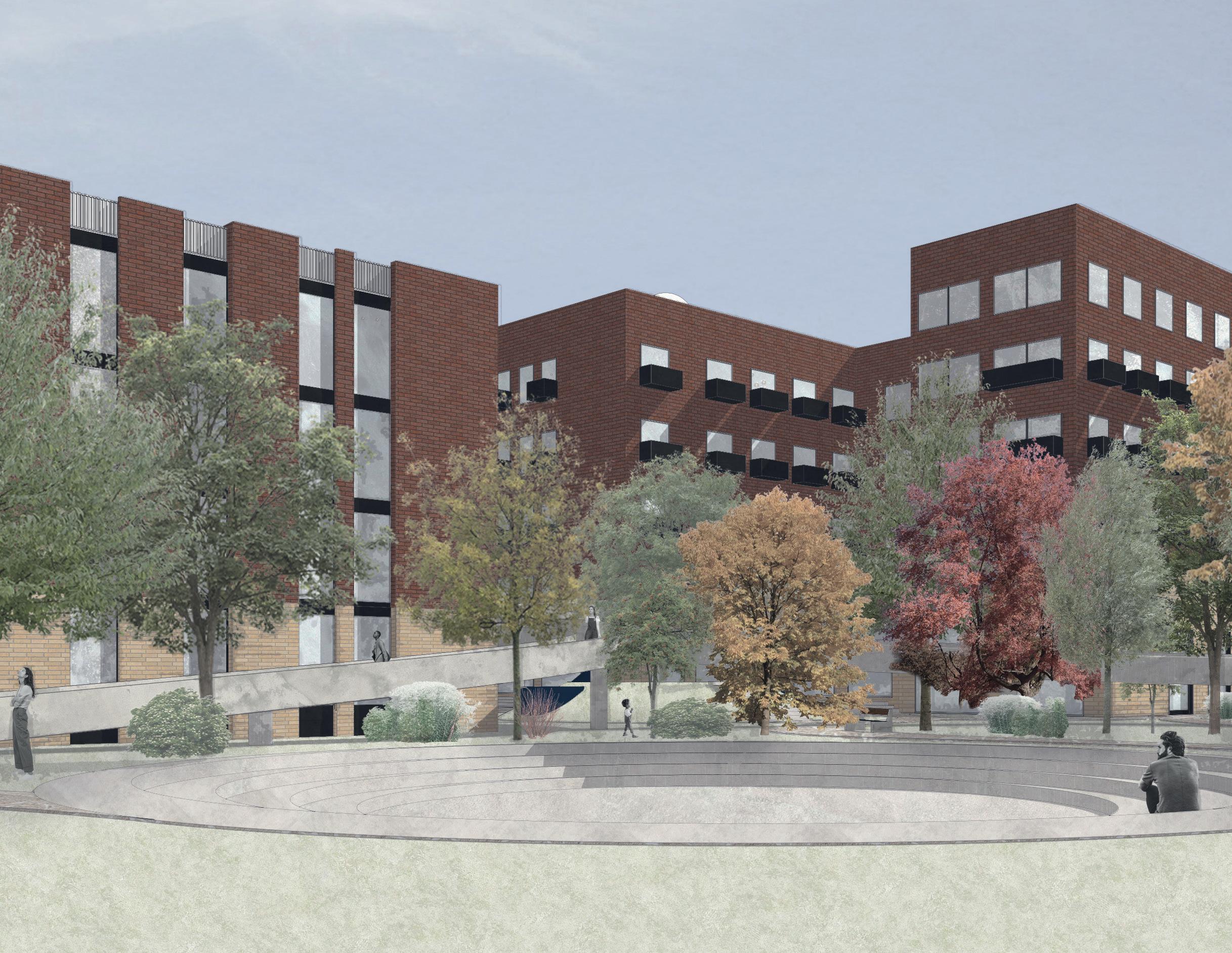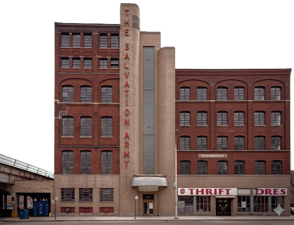 THE RENOVATION OF THE FORMER REHAB BUILDING INTO THE RESIDENTIAL BLOCK INVOLVED A SIGNIFICANT REDESIGN OF THE FAÇADE WHILE MAINTAINING HISTORICAL ELEMENTS. THE NEW DESIGN REIMAGINES THE VERTICALITY OF THE ORIGINAL BY INCORPORATING LARGER WINDOWS WITHIN THE EXISTING BRICK FRAMEWORK. TO CREATE VISUAL COHESION WITH THE ADJACENT HOSPITALITY BUILDING (FORMER SALVATION ARMY), THE ORIGINAL GROUND FLOOR BRICKS WERE REPLACED WITH LIGHTER COLORED BRICKS. THE VERTICAL EMPHASIS IS FURTHER EXTENDED TO THE NEW ADDITIONS ON THE ROOFTOP.
