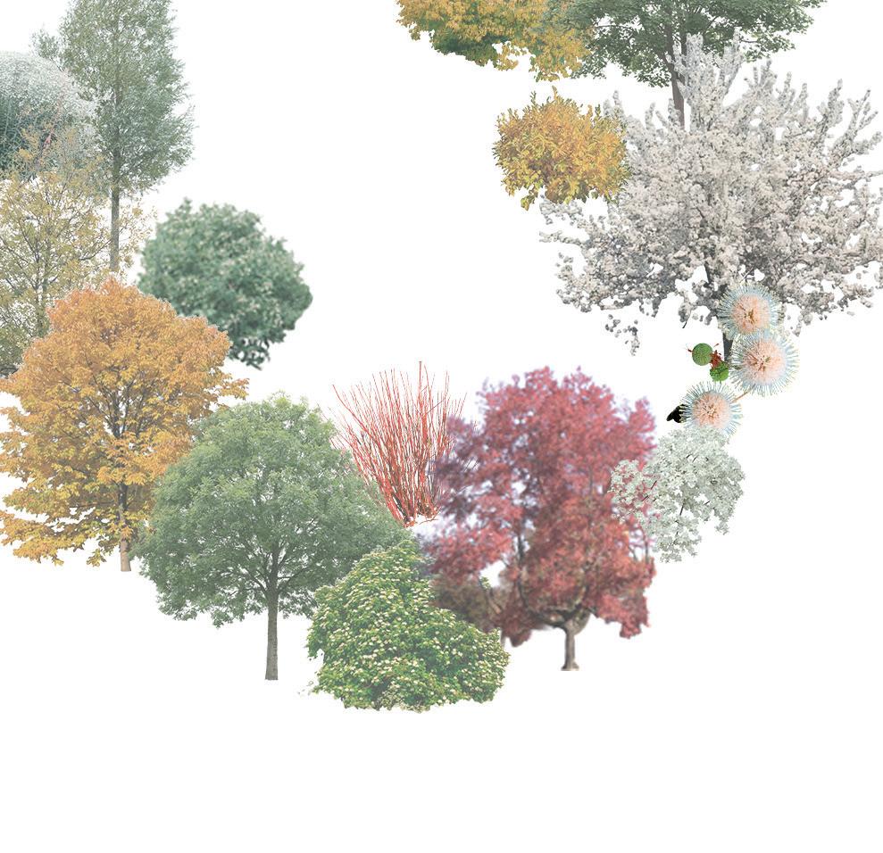 IN THE WINTER MONTHS THE AREA RETAINS ITS ELEVATED PERSPECTIVE, WHICH BECOMES MORE DRAMATIC AS THE CENTRAL TREE LOSES ITS LEAVES. THE EXISTING PLAY INSTALLATIONS ARE REPURPOSED TO CONTINUE ALLOWING CHILDREN TO ENGAGE IN ACTIVE, SEASONAL PLAY, MAINTAINING ITS FUNCTION AS A YEAR-ROUND RECREATIONAL ASSET.