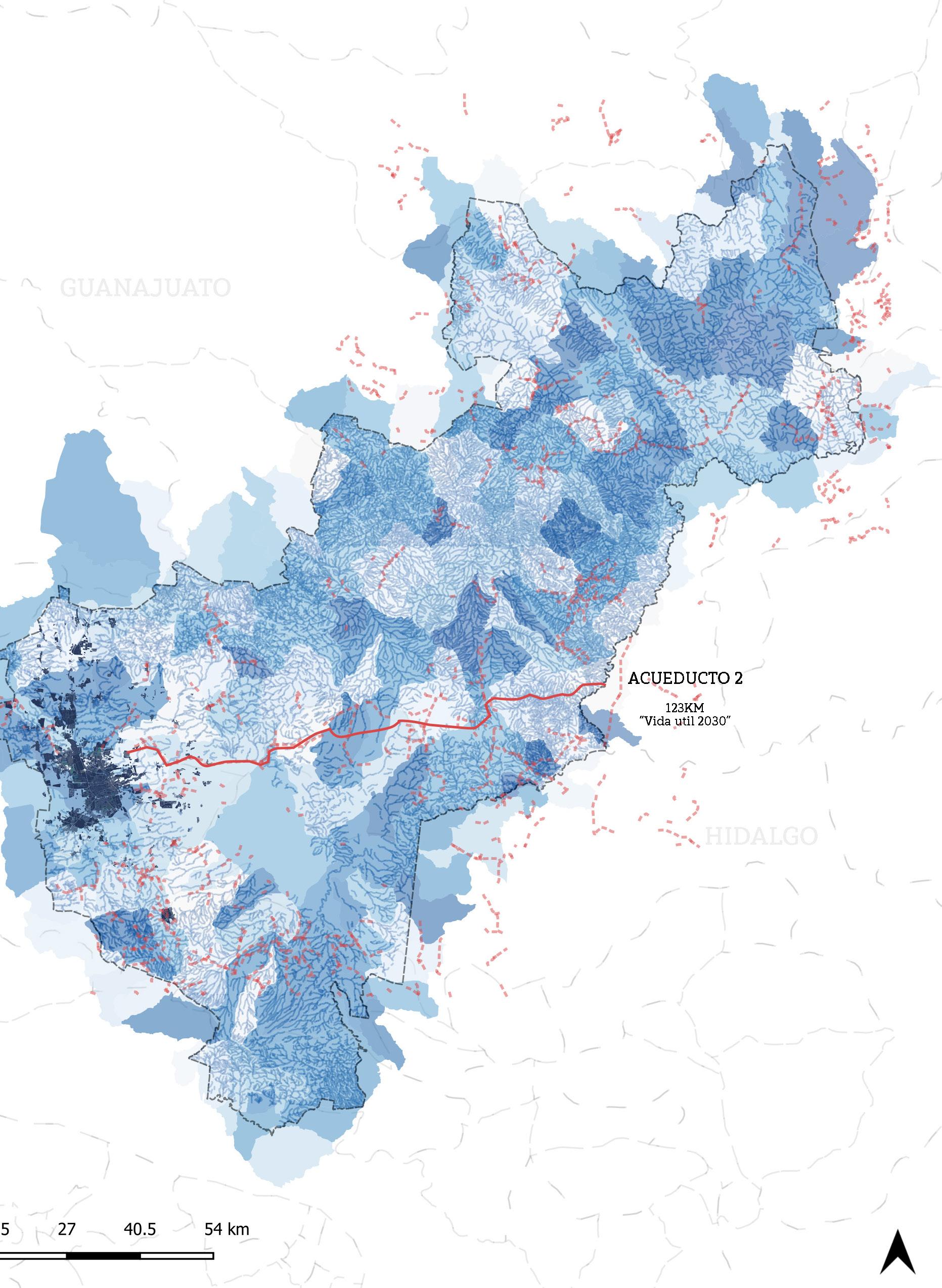 Currently, Queretaro is supplied with water through the Acueducto II, which transports water from the northeast to the southwest for 123 kilometers; it crosses the Pánuco River and the Lerma-Chapala basin.