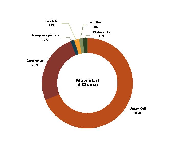 En efecto, de acuerdo a la encuesta hecha el sábado 20 de agosto en el Charco del Ingenio, el 58.7% de los visitantes llega en automóvil. Este medio de transporte resulta ser la opción para llegar más rápido al sitio. Además, ante la inexistencia de ciclovías en la zona, paradas de autobús solo 2.6% de los visitantes llega en este medio de transporte. vResulta irónico, que a pesar que en el Charco del Ingenio se tienen claros sus objetivos, sigue formando parte de una problemática sistémica en el hacer ciudad: “hacer ciudades para el coche”. Más aún, pese la búsqueda de este jardín botánico en ser un enlace entre la