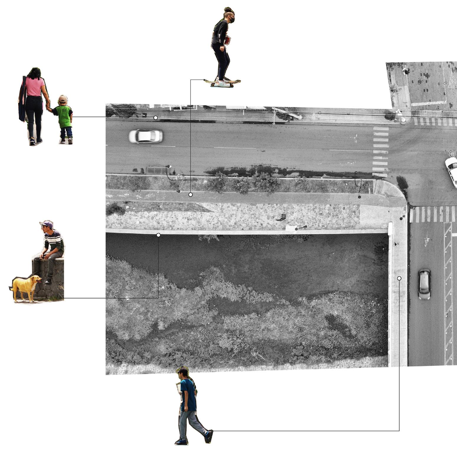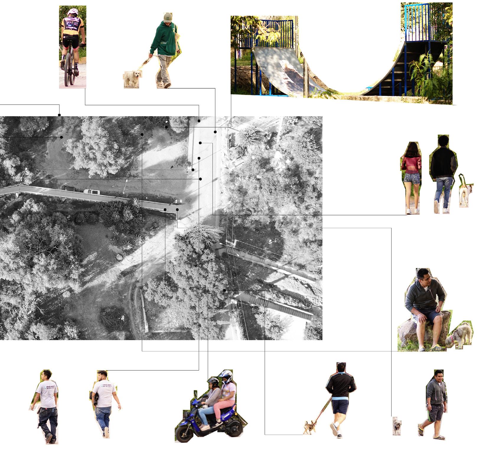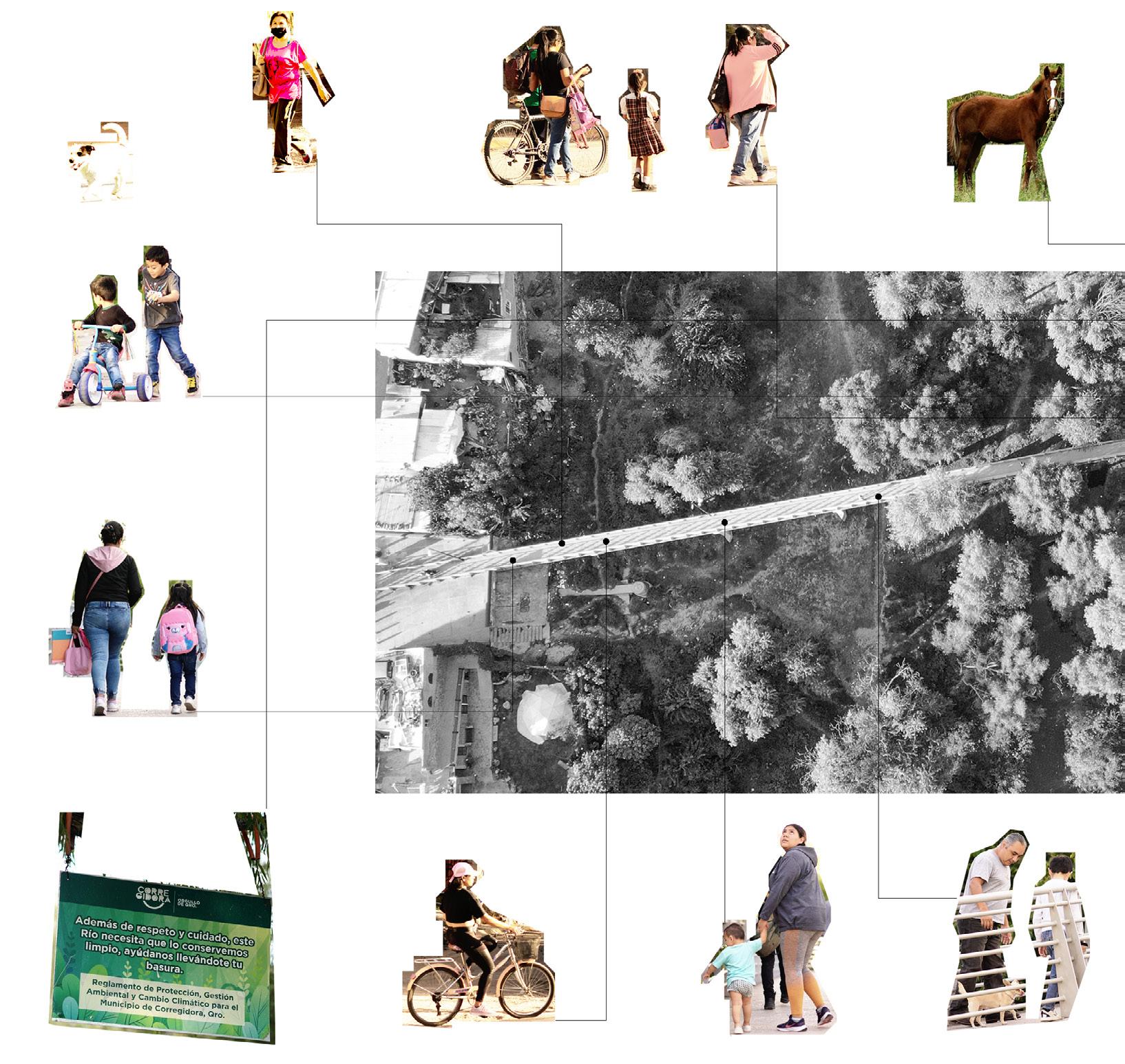 El análisis se llevó a cabo el sábado 3 de Septiembre, de 2:15 p.m. a 2:45 p.m sobre la intersección de la Av. Fray Eulalio Hdz. y la calle Josefa Ortíz de Domínguez. Se observó cual era la relación de los locales con el río el Pueblito, así como su flujo, movimientos, actividades, género, relación y edad. Tras haber observado por 30 minutos, se pudo concluir que la principal actividad es transitoria. Se concluyó que hay un mayor porcentaje de hombres que transita sobre dicho cruce. Resalta la falta de mobiliario urbano como de sombra, hay muy pocos usuarios que se encontraban realizando una actividad al costado del río. Fueron 109 personas las que circularon por esa área en 30 minutos. ¿Qué nuevas dinámicas se pueden establecer a partir de las existentes?