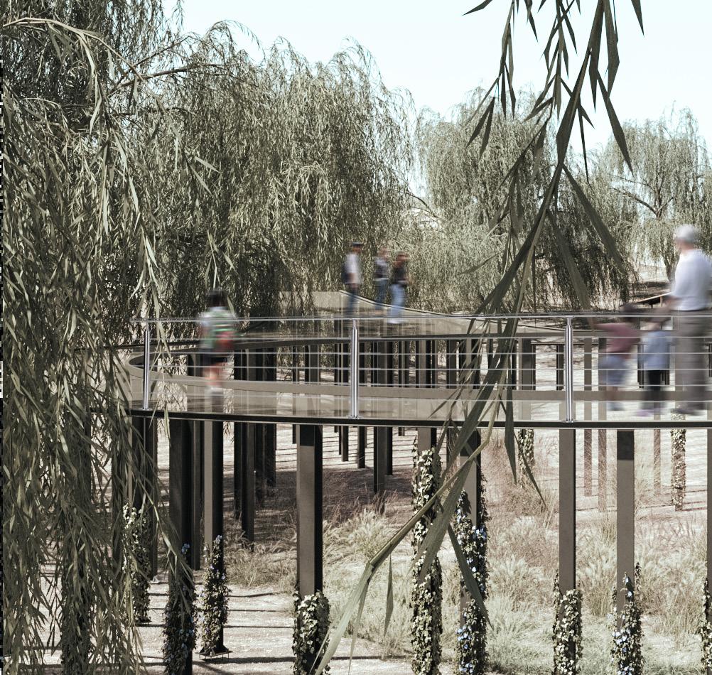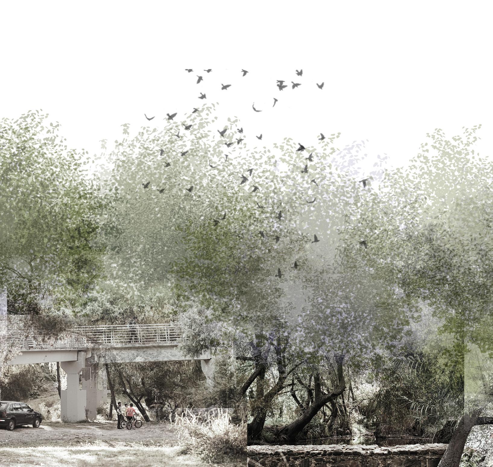 En este tramo del río acaba la intervención de los taludes de mampostería, y se puede volver a ver los taludes naturales del río, así como una vegetación emergente a orillas del mismo.