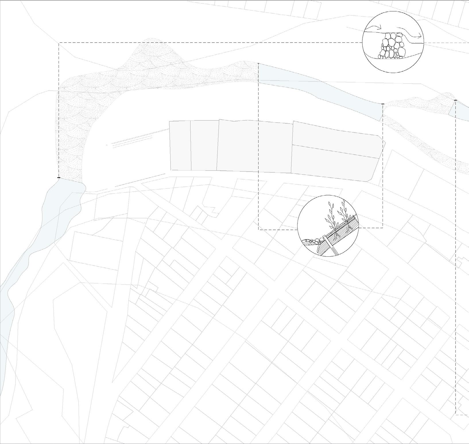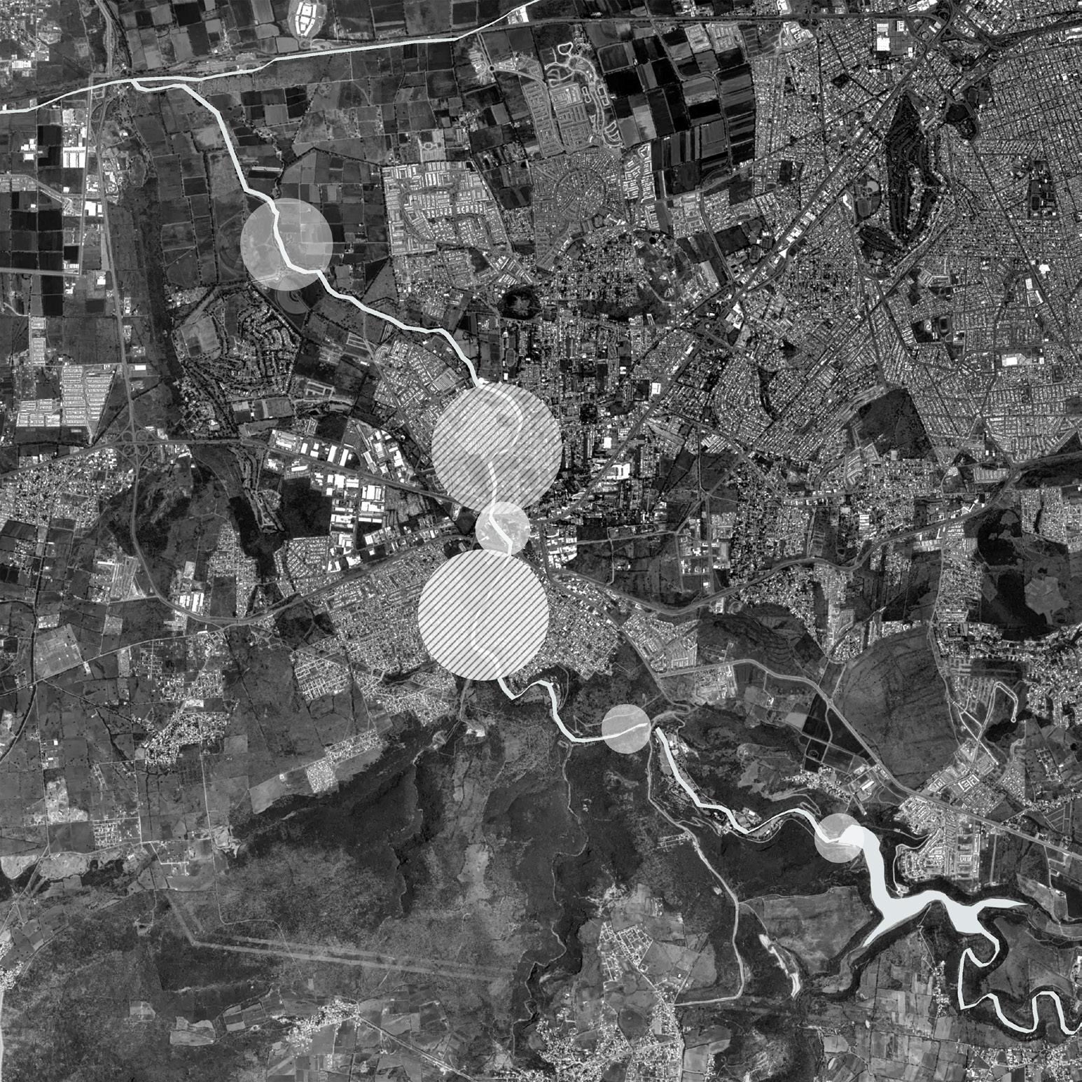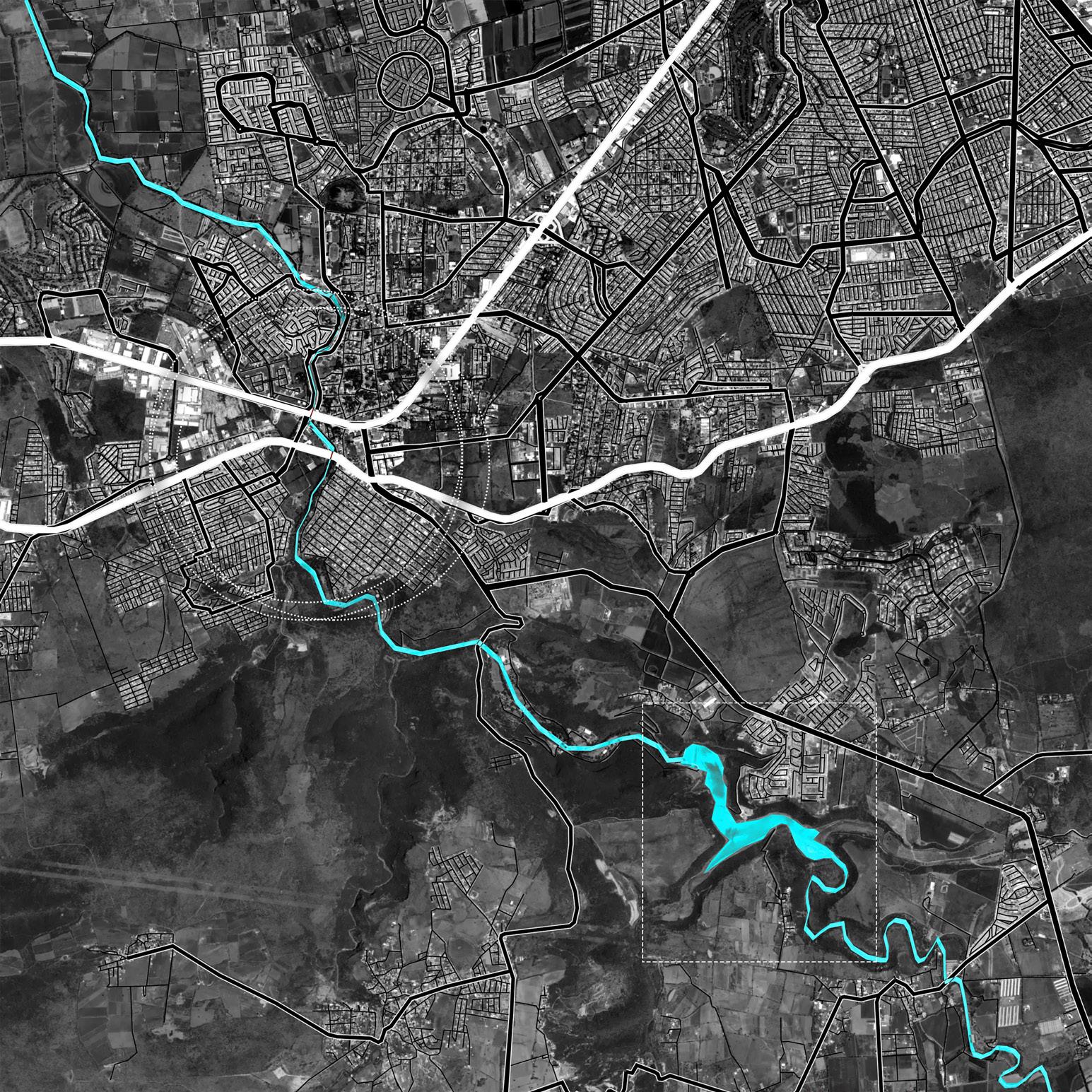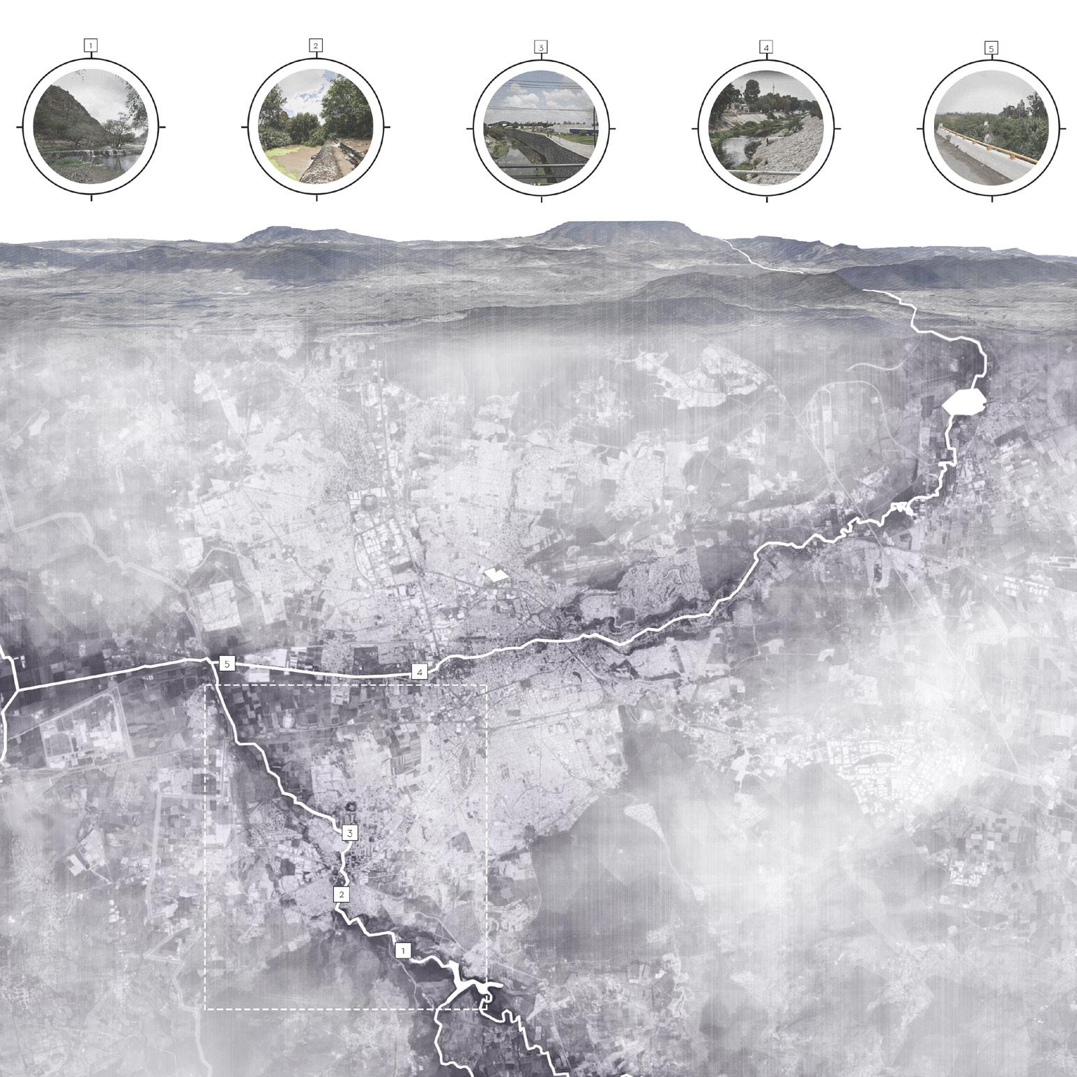 Se puede observar a nivel escala ciudad, dónde suceden las proble máticas en el río. En las zonas menos desarrolladas, hay asentamientos irregulares, los cuales son ilegales en todo México, ya que no debe ha ber ningún tipo de construcción 30 metros a los lados del cauce de los ríos. En estas zonas hay vertederos del drenaje y del rastro municipal; algunos sin ningún tipo de saneamiento. Otra problemática sucede en el centro del Pueblito, donde se rectificaron los taludes del río con muros de mampostería.