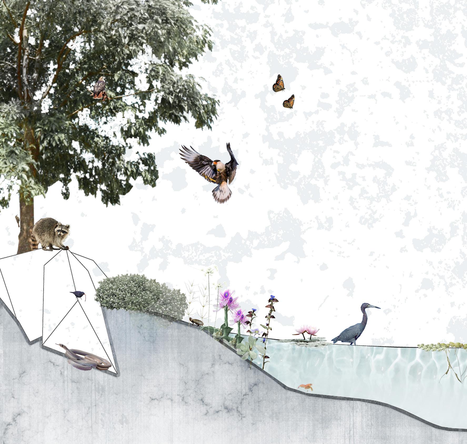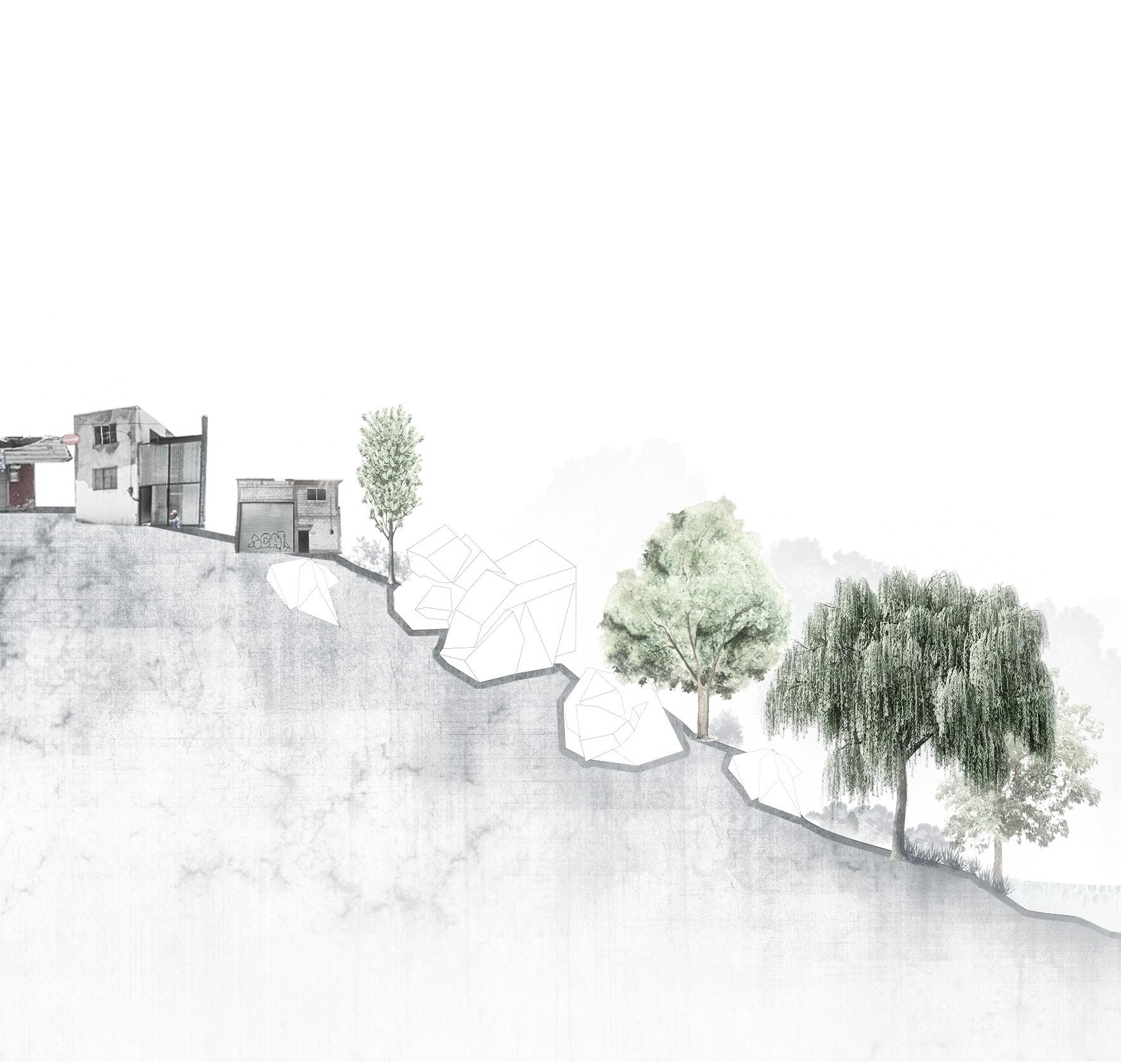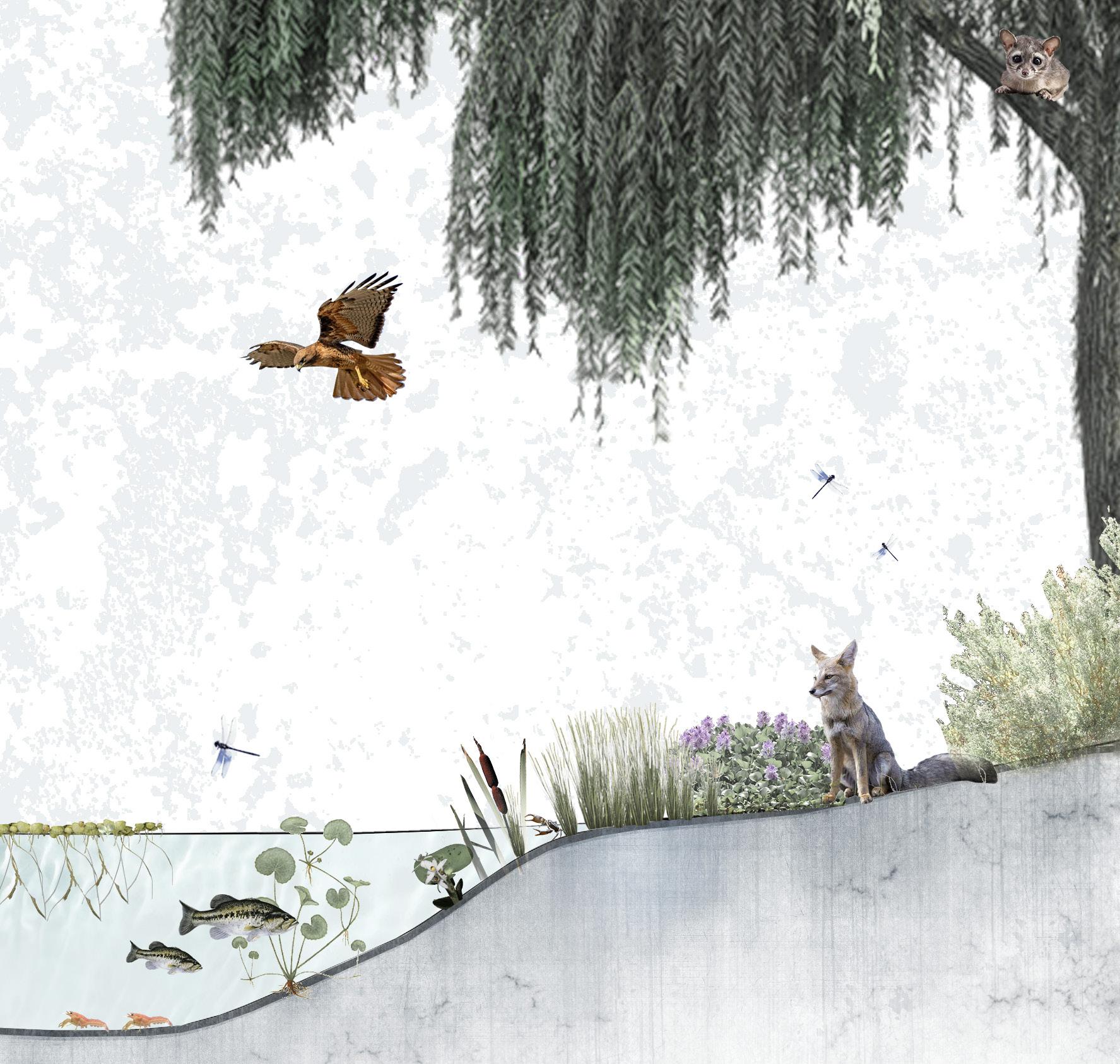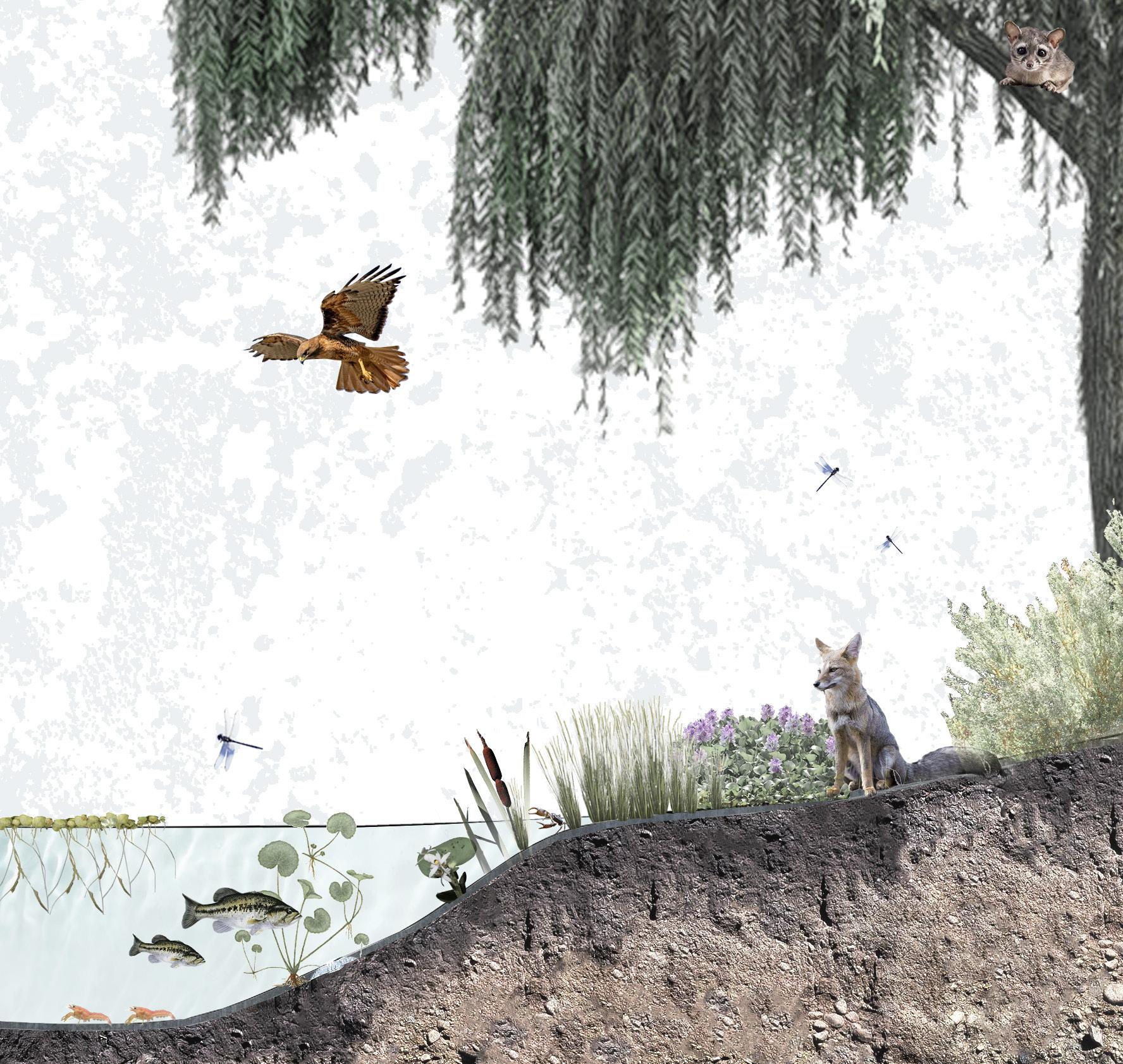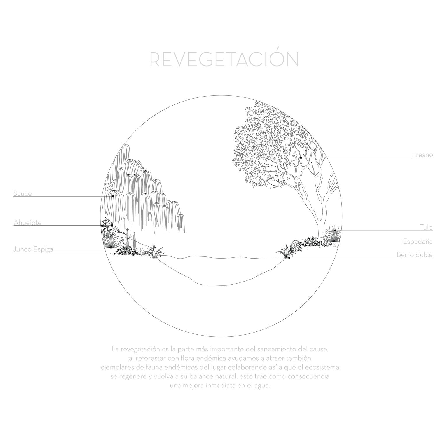CORTE ESQUEMÁTICO FLORA/FAUNA/RÍO ANTES DE LA PRESA EL BATÁN
