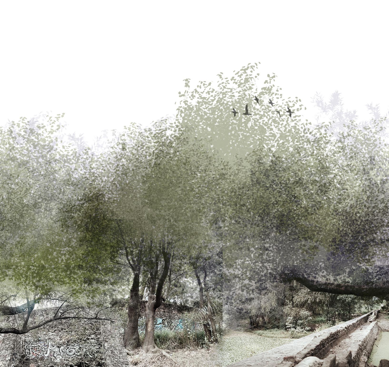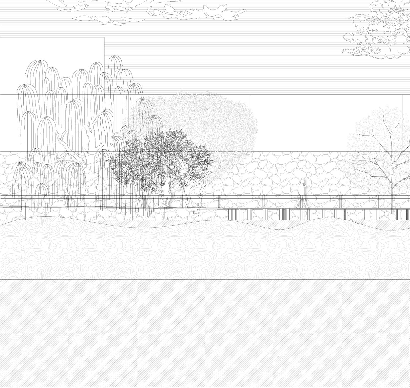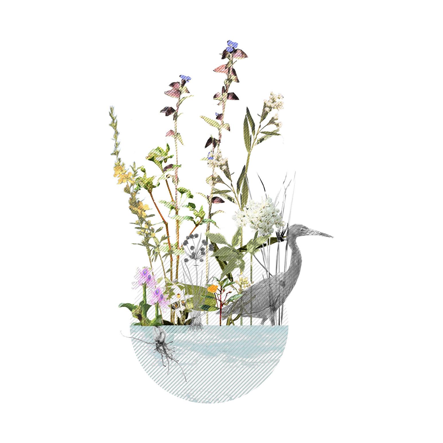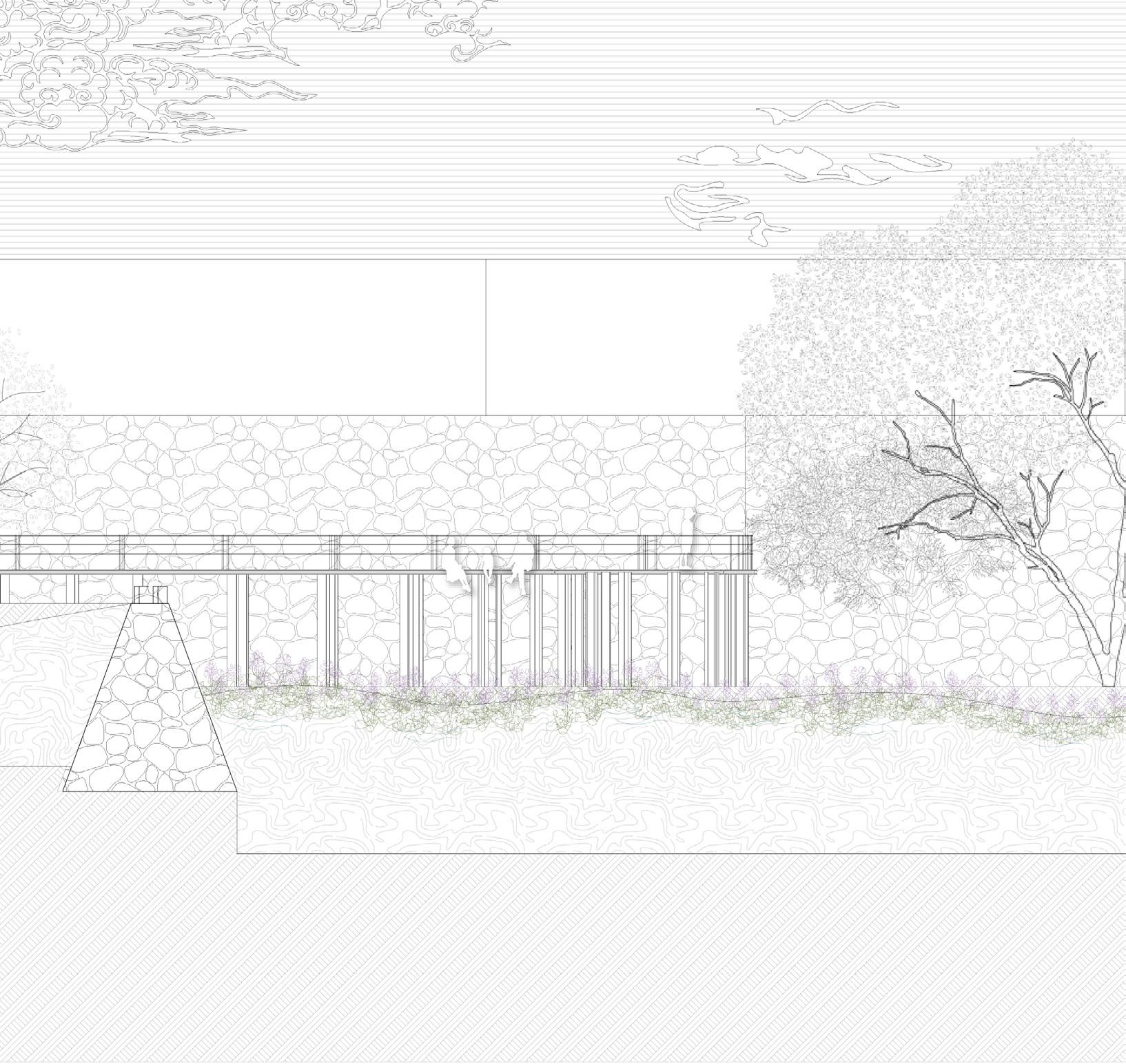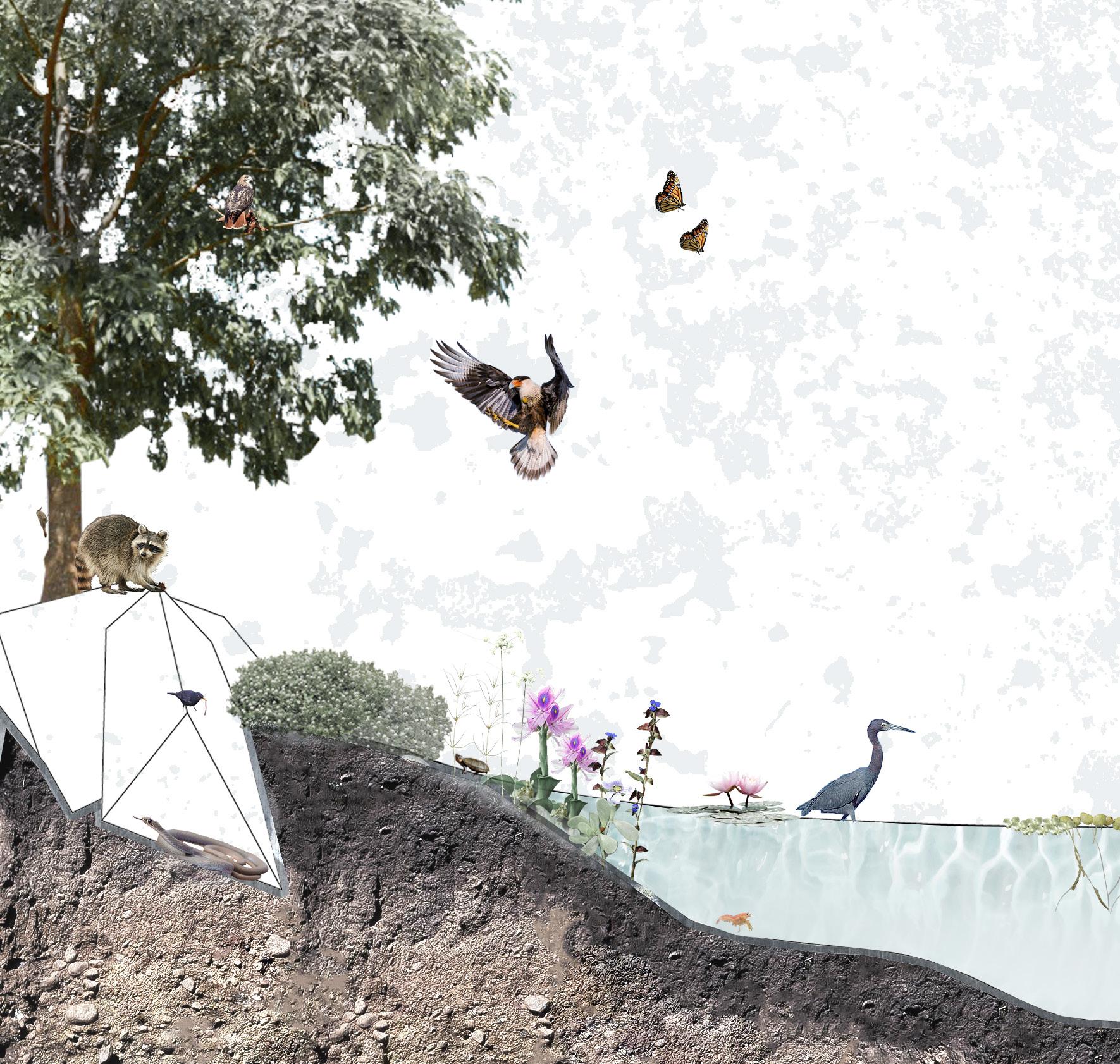 CORTE ESQUEMÁTICO FLORA/FAUNA/RÍO ANTES DE LA PRESA EL BATÁN