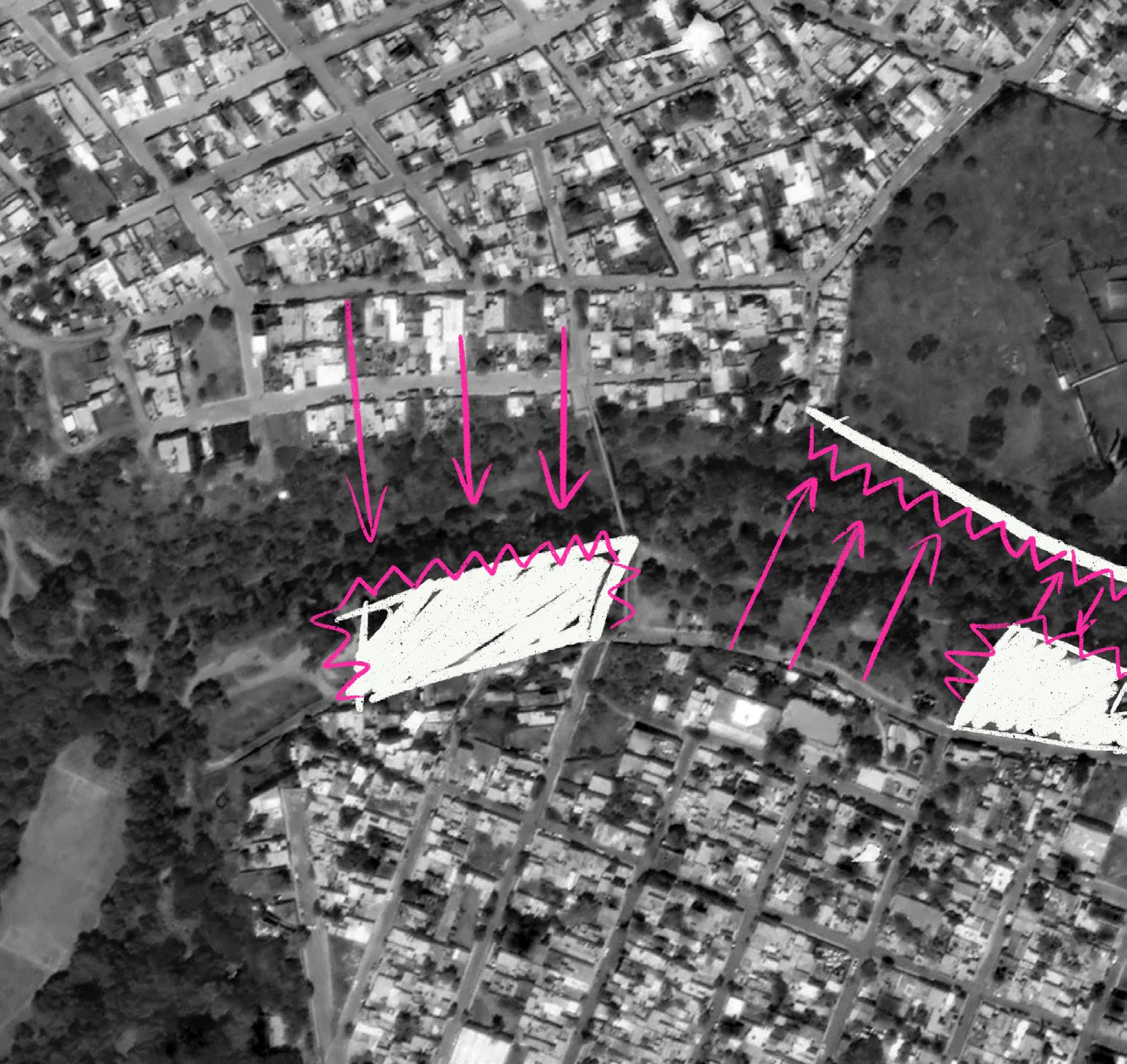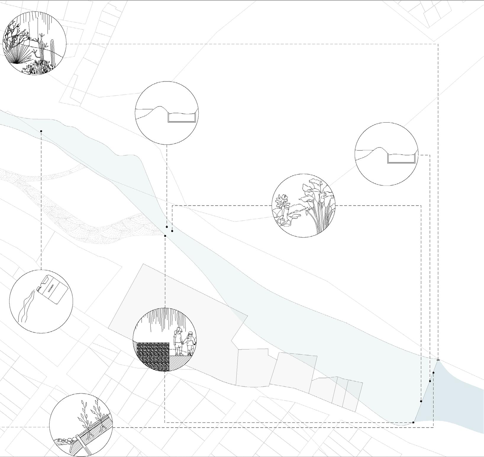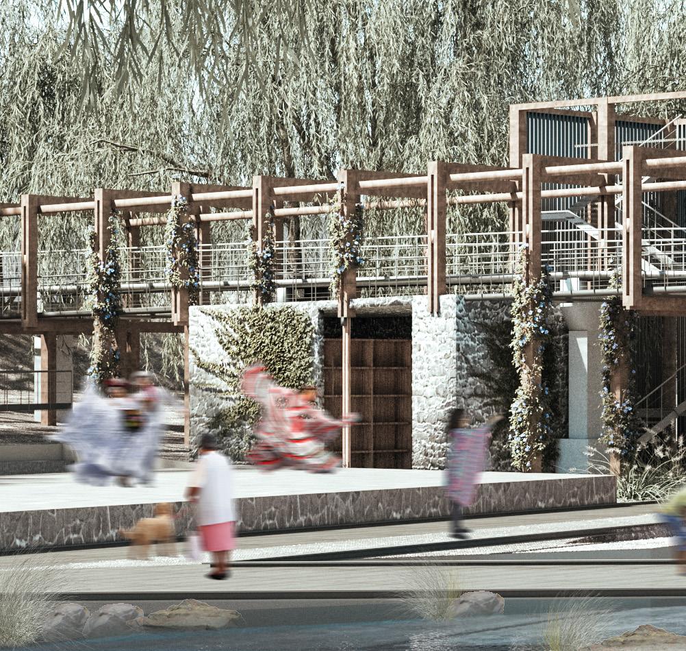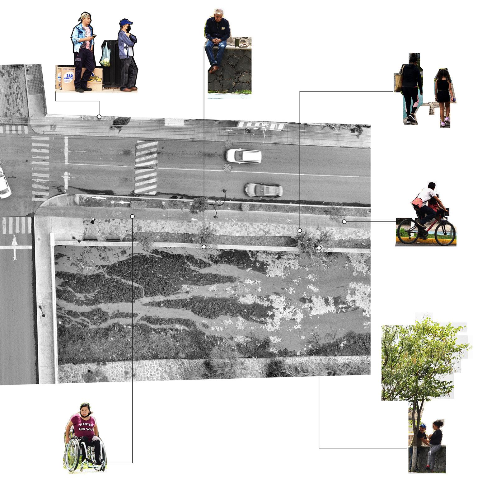 A orillas del cauce se construyó un parque informal, donde a falta de reglamentación los usuarios utilizan este de ma nera negativa. Aunque la intención es buena, el diseño no respalda su iniciativa.