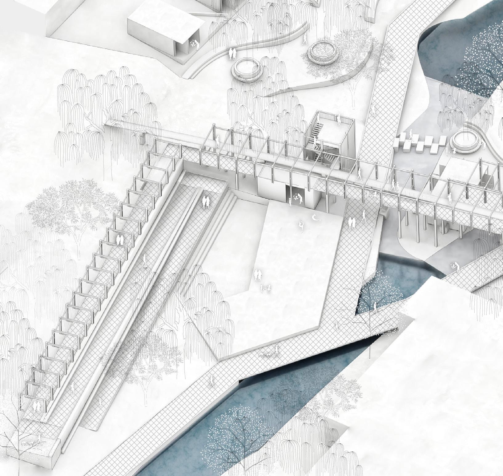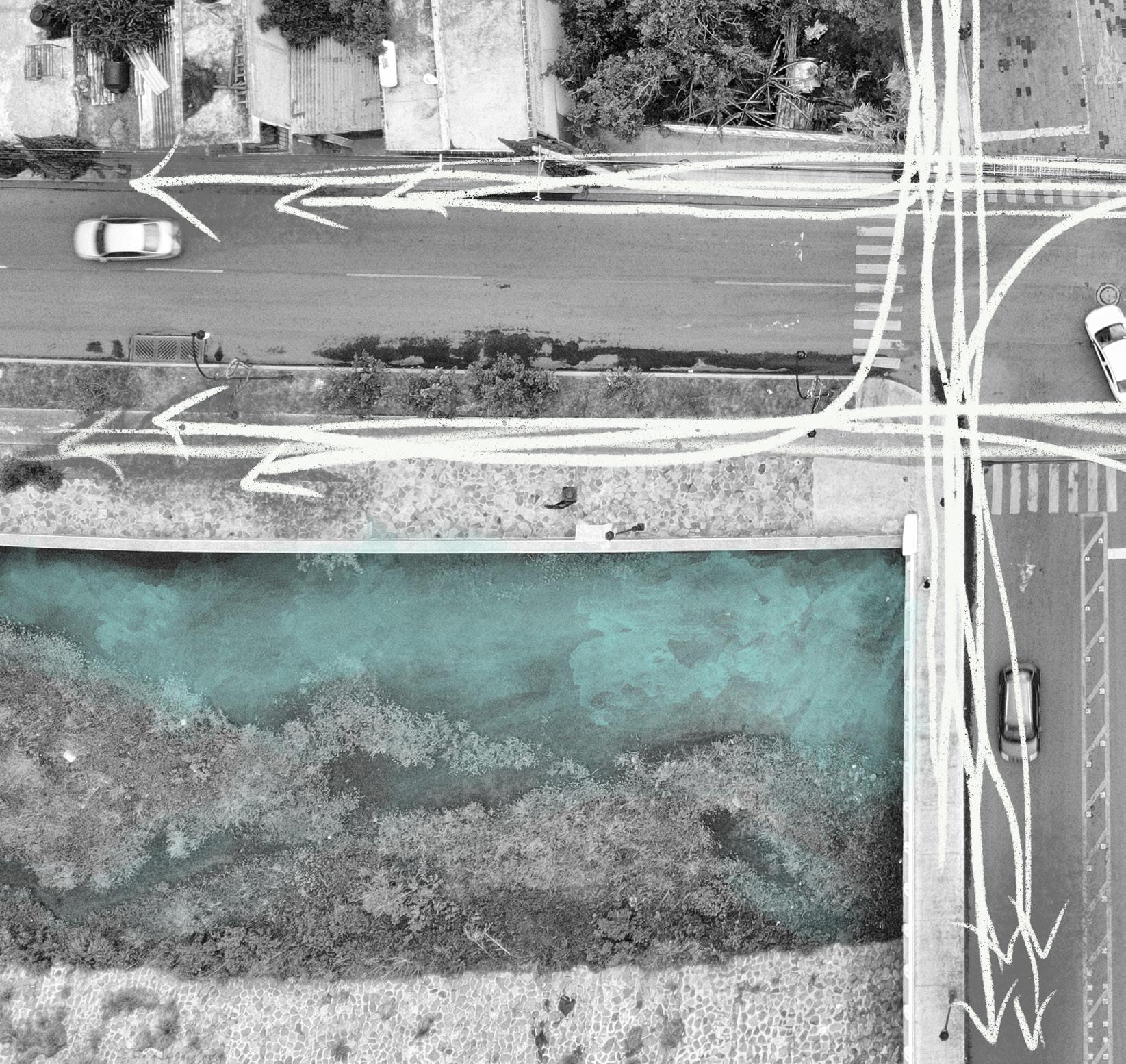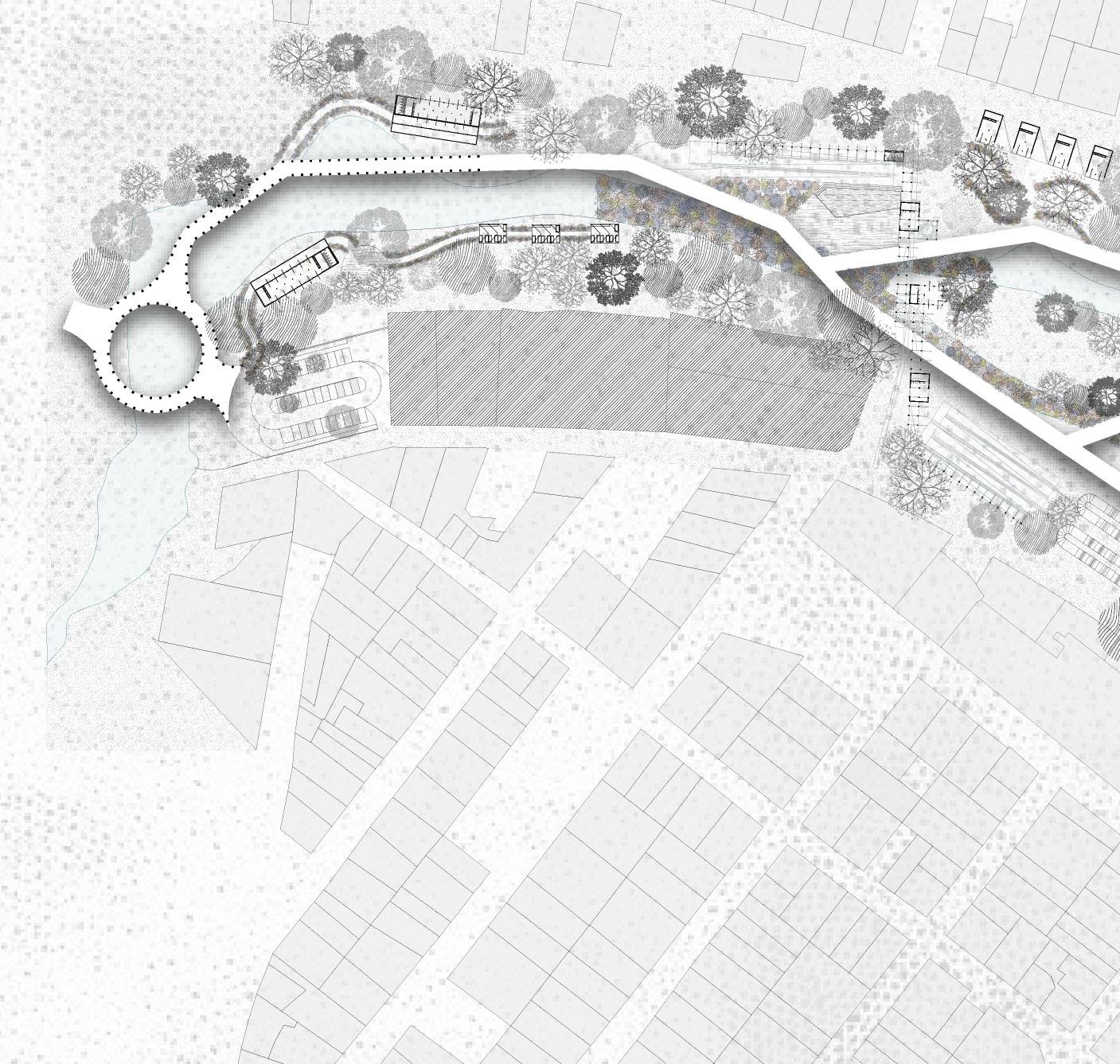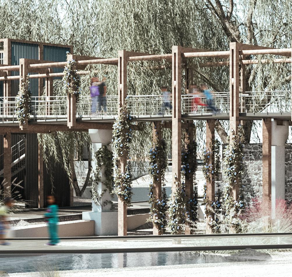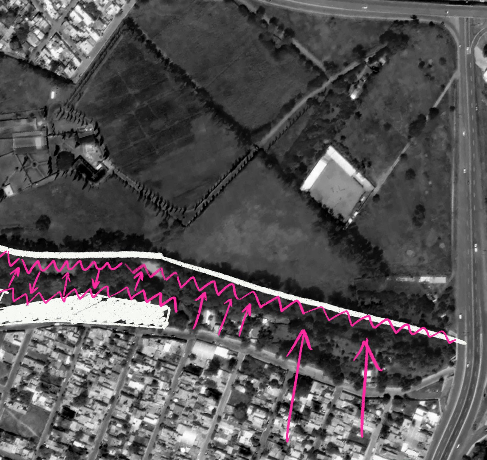 A orillas del cauce se construyó un parque informal, donde a falta de reglamentación los usuarios utilizan este de ma nera negativa. Aunque la intención es buena, el diseño no respalda su iniciativa.