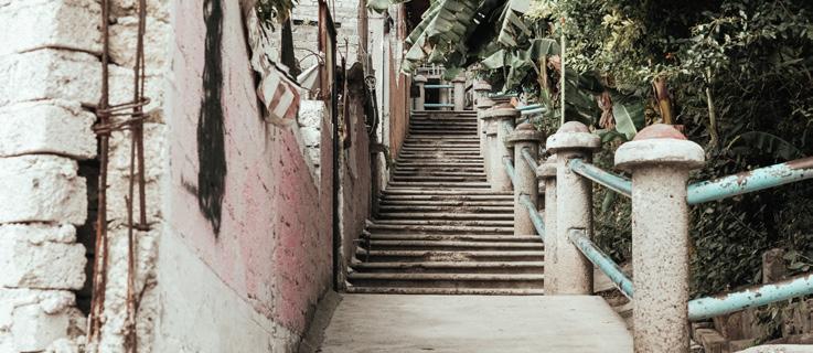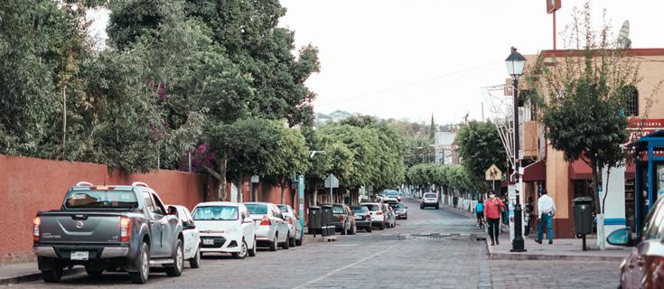 Se puede apreciar cómo va cambiando el acabado de calle: en la zona centro se aprecia adoquinado, mientras que en las afueras las calles son asfaltadas.