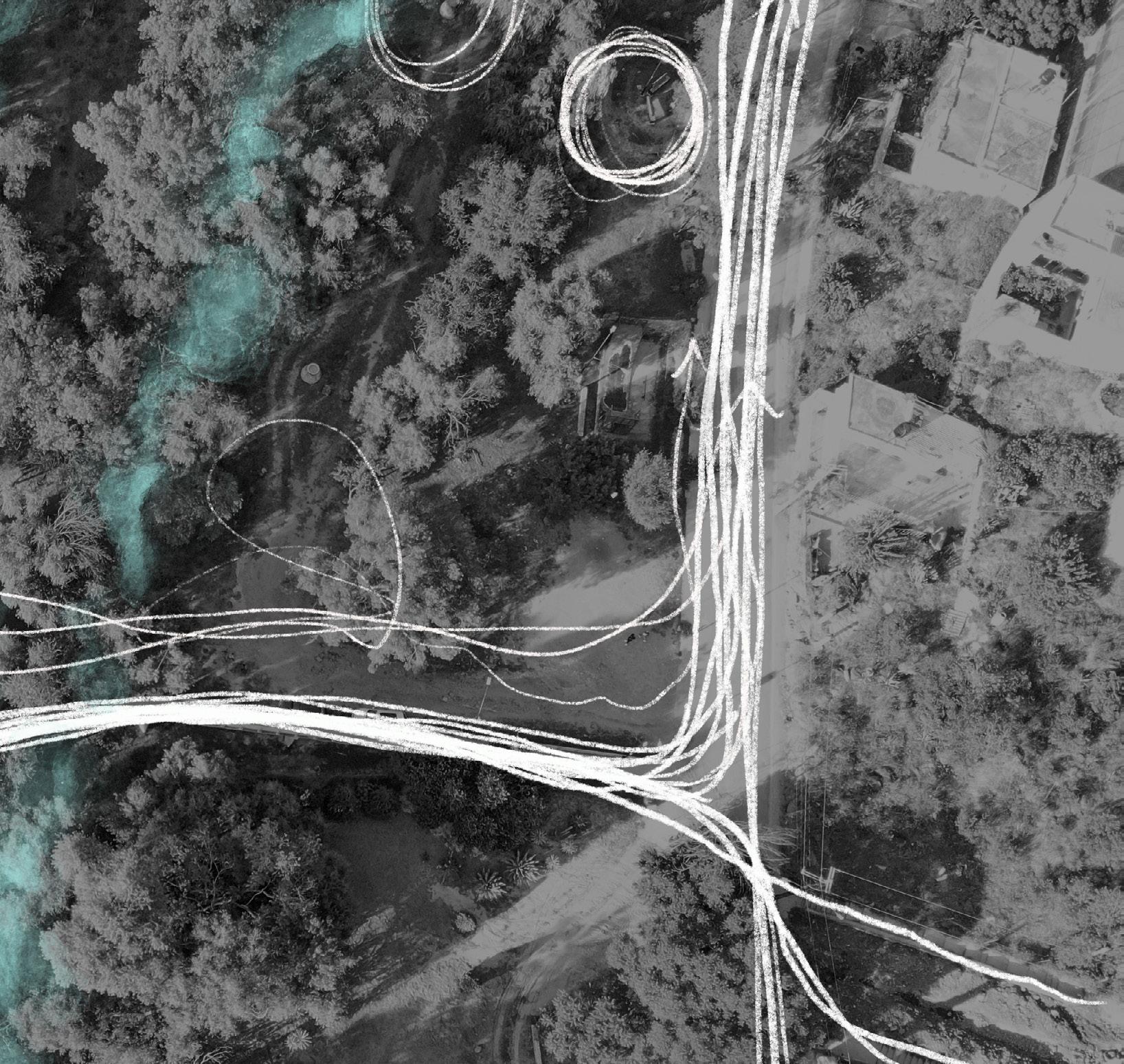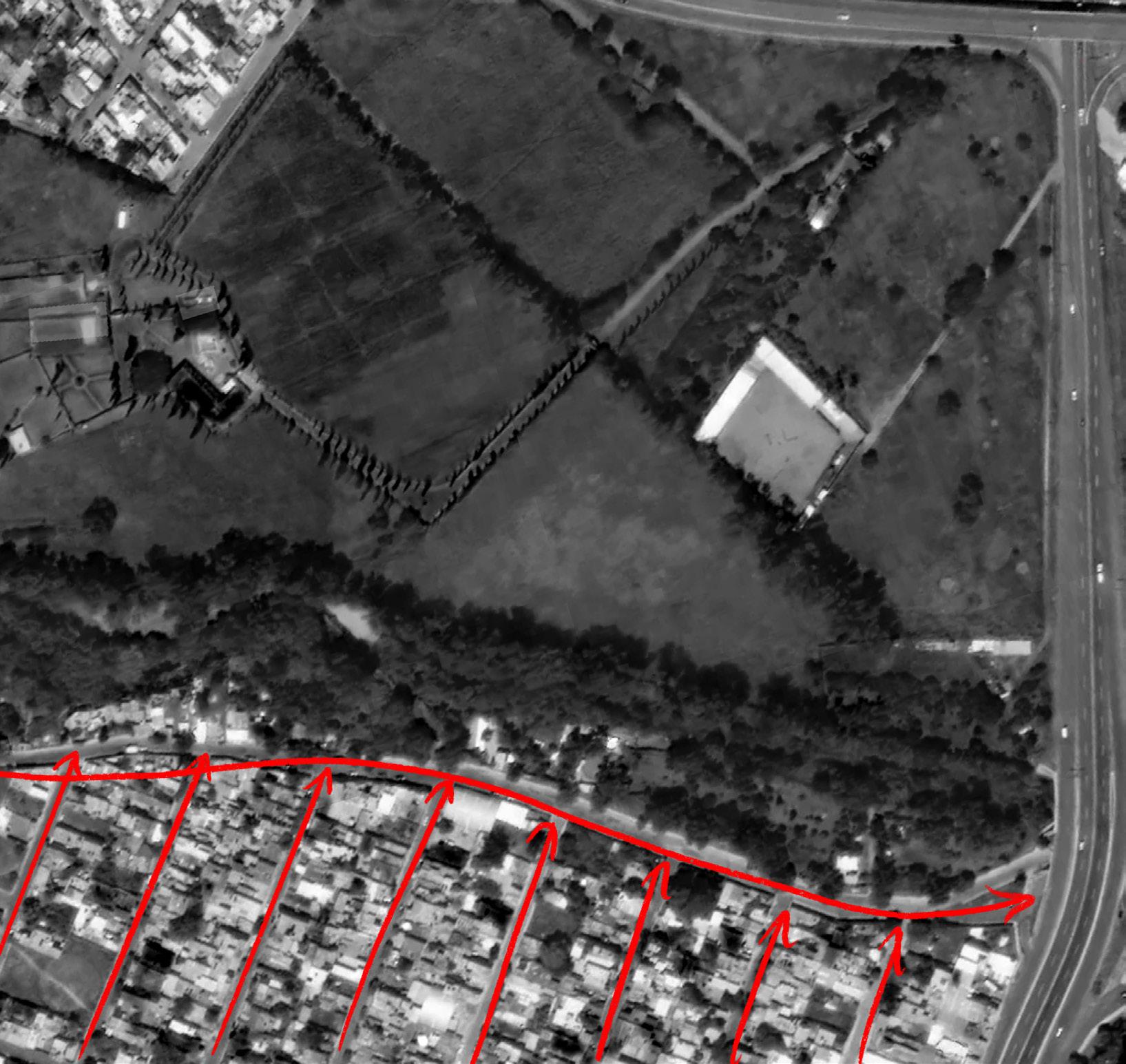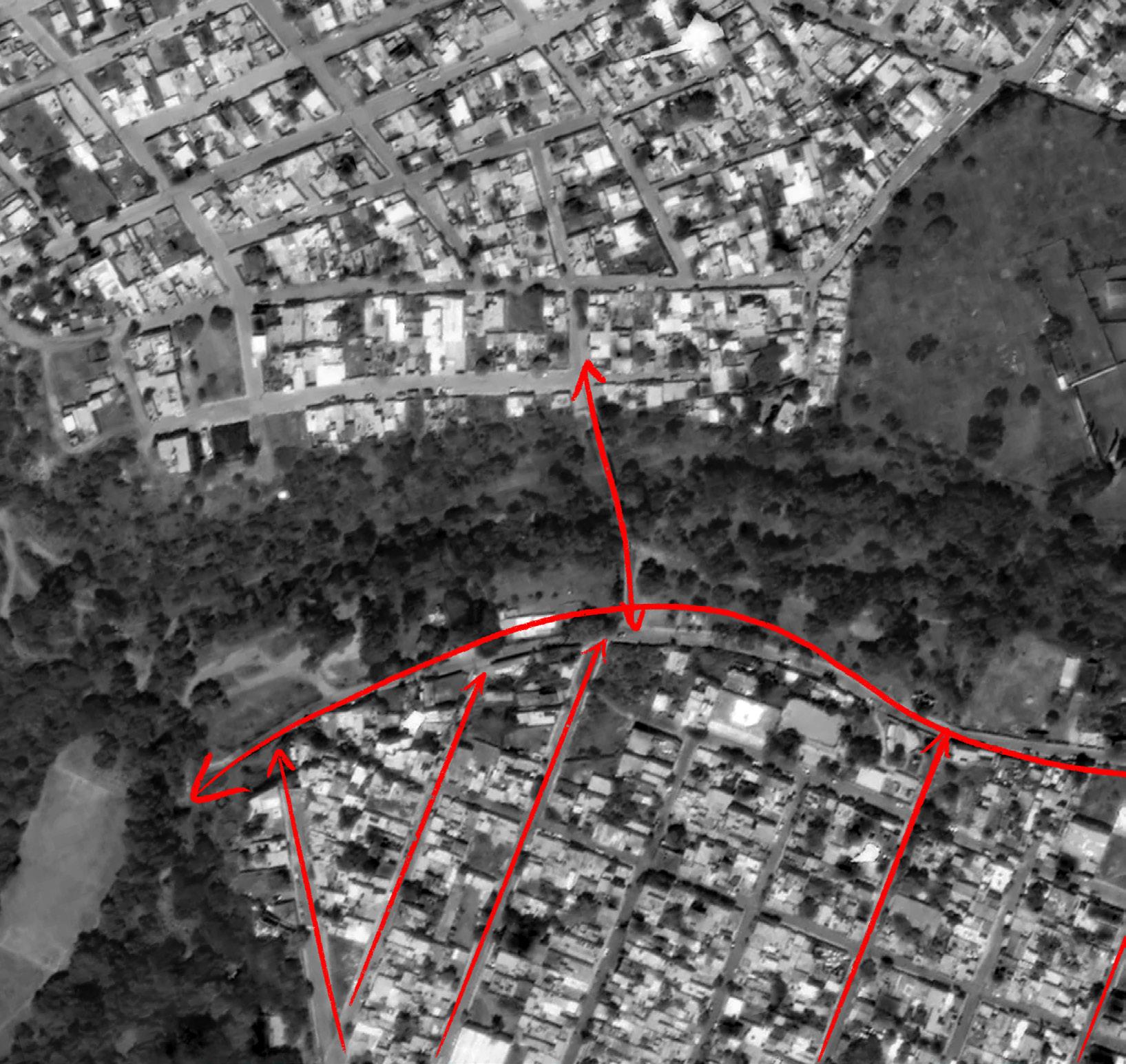 Fotografía aérea: Modificación de taludes en la zona centro de el Pueblito. Elaboración propia.