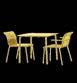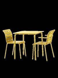 Grid with planters and seats of varying heights Simple tables for 2-4 people.
