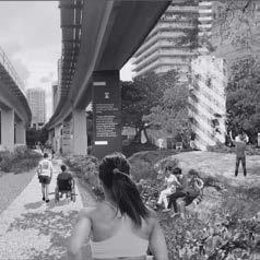 This project transforms the space beneath Miami’s elevated Metrorail into a 16-kilometer linear park featuring pedestrian and bicycle paths, sports areas, and green zones that connect multiple neighborhoods. Its materiality combines permeable pavements, native vegetation, steel, concrete, and LED lighting, all adapted to the tropical climate. The structure relies on the existing rail infrastructure, which acts as a continuous canopy, while the areas below are organized into themed “rooms.” Its spatial logic is based on a continuous linear sequence with separate flows for pedestrians and cyclists and direct connections to public transit. In context, it responds to the lack of public spaces in a car-oriented city, promoting sustainable mobility, social cohesion, and urban resilience.