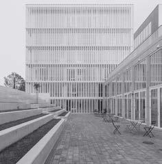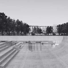 The university campus expansion includes classrooms, workshops, and laboratories designed to foster creativity and collaboration. Its materiality consists of exposed concrete, steel, and glass, creating a sober yet transparent and flexible environment. The structure employs post-tensioned slabs supported by concrete cores, freeing the ground floor and allowing visual continuity with the surrounding landscape. The spatial logic is organized around three aligned volumes connected by a central open area that unites interior and exterior spaces. In context, the project reinterprets modernist values of functionality and community, integrating architecture and landscape to form a contemporary, open, and inspiring educational setting.