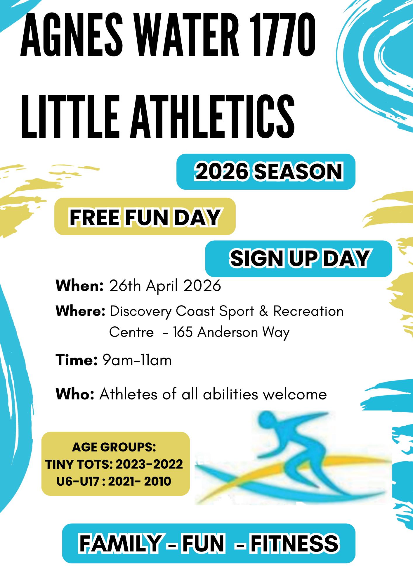 Agnes Water/1770 Little Athletics is inviting children and families from Agnes Water, Seventeen Seventy, and surrounding areas to attend their upcoming Sign-On Day and Fun Day.