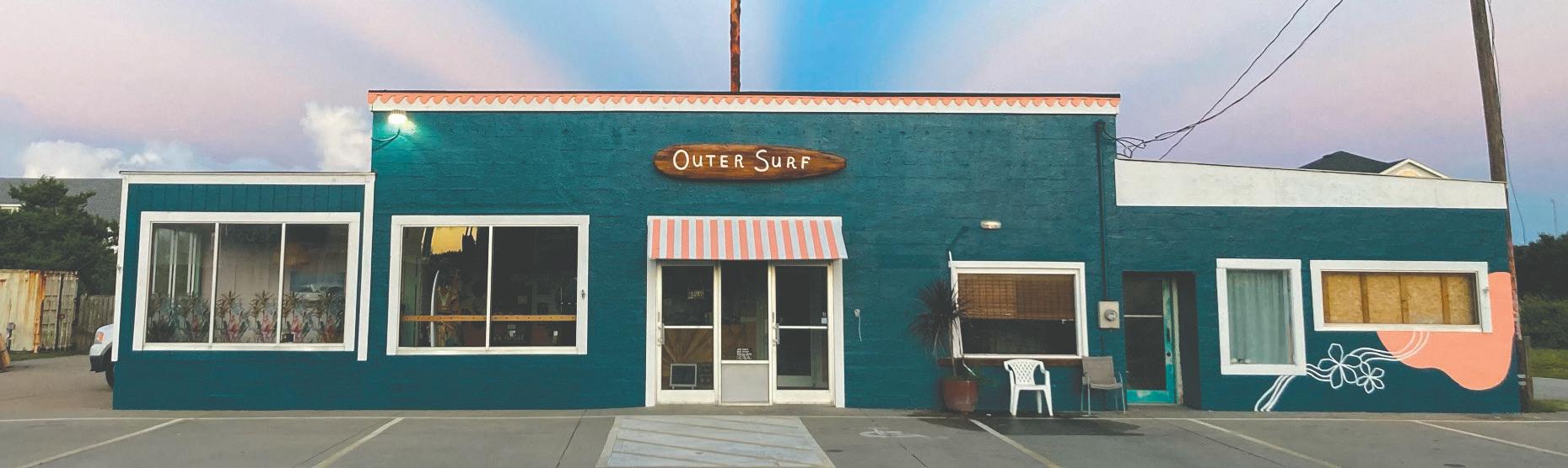 On the cover; black and white photos all from the Outer Banks History Center, Manteo, NC, from top left, clockwise: Aerial view of Highway 12, better known as the Beach Road, Aycock Brown Collection; Downtown Manteo, looking east, D Victor Meekins Papers; 1st Annual Pirates Jamboree, Jeep race on Jockey's Ridge, Nags Head Casino in background, 1955, Aycock Brown Papers; Water St., Manteo, D Victor Meekins Papers. Credits for color photos: Fish Heads, courtesy Jennette’s Pier; Dare Arts, Summer Stevens; Hardy family, Daryl Law; Kitty Hawk Fishing Pier, courtesy Jennette’s Pier; Surfin’ Spoon, Mike Leech; Graveyard of the Atlantic Museum, Mary Helen Goodloe-Murphy; Dowdy Park, Philip S. Ruckle Jr.