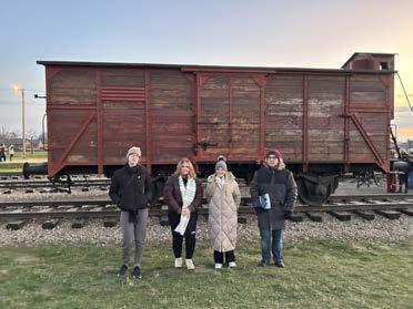 “On our one-day visit to Poland, we were emersed in the experiences of the 1930s-1940’s. We were able to learn about the history of the concentration camps and why they were constructed. The most intriguing being that Auschwitz one was actually created as a Polish Army CampthattheNazi'stookcontrolofandusedtoimprisonPolishintellectuals,politicalprisoners and then later Jews and the red army. It was here that the personal belongings of a million Jewish people were taken and kept in warehouses, waiting to be sent back to Berlin to be redistributedtotheGermanpopulation. Duringourvisit,wedovedeeperintothepersonallives of many individuals who were held within the camps. In the afternoon we moved to Birkenau which is located a few kilometres from Auschwitz, This camp was built for the sole purpose of murder. We saw the horrific conditions the victims endured while held, the infamous trainline railhead and watchtower that looms over the camp that the Jewish people were told was a family camp, and the remains of the vast gas chambers and crematoria buildings built to murder huge numbers of people with maximum efficiency. Throughout the visit we heard the personal stories of victims and stories of their resistance and bravery in the face of adversity, a truly harrowing experience. We will be continuing our studies of the Holocaust by working with the history team to deliver assemblies and activities in January, in the lead up to Holocaust Memorialday.”