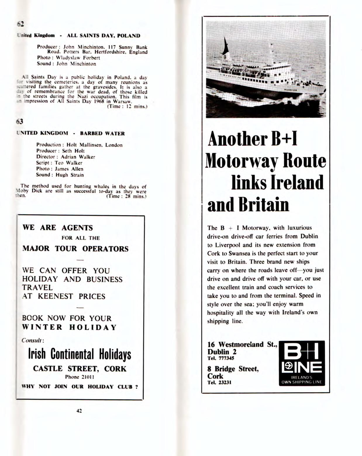We do not think it idle to claim that our visitor di scover a distinctive character and atmosphere in Cork. and that they reali se how sincere is our ' Cead Mile Faitte ·. We pledge ourselves, for one thing. not to let that particular image tarnish through the casualne s that over-familiarity can bring. Cork's reputation for friendliness. hospitality. an unpretentious air of enjoyment and the atmosphere of earnest public interest in the cinema is what we cherish , and what we guarantee when we first welcome our guest s in a way that we hope makes them feel truly at home in o ur midst.