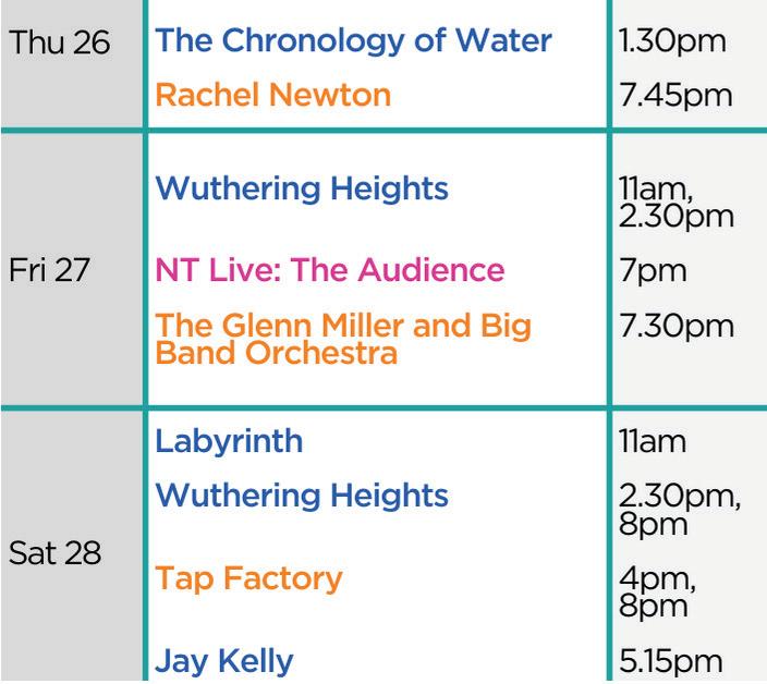 Fri 6 4.45pm, Sat 7 5.15pm, Mon 9 2.30pm, Wed 11 5.15pm, Thu 12 7.45pm, Tue 17 6pm, Wed 18 11am, Thu 19 8pm