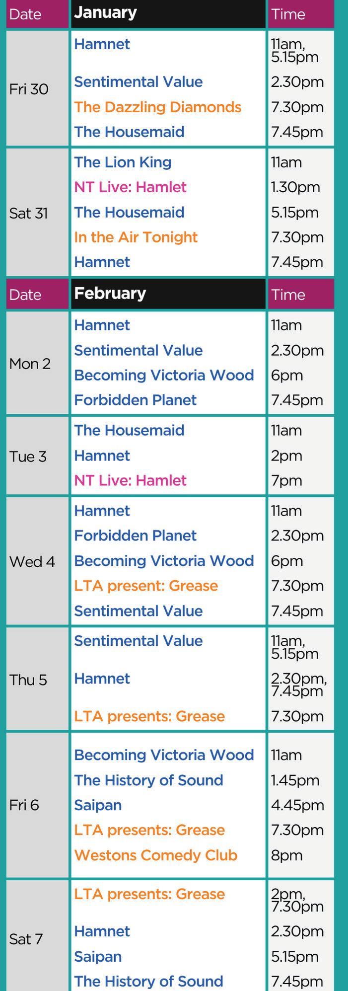 January Fri 30 7.45pm, Sat 31 5.15pm