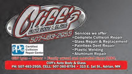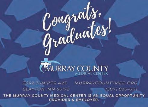 10 | GRADUATION 2023 | Wednesday, May 17, 2023 | The Globe dGlobe.com Congratulations Class of 2023 James & Carla Goedtke, MRFC®, CSA® 1 Prairie Dr. Slayton, MN 56172 507-836-8844 www.investors-choice.com Securities offered through American Portfolios Financial Services, Inc. Member FINRA/SIPC. Advisory Services through American Portfolios Advisors, Inc. an SEC Registered Investment Advisor. Investors Choice Financial Services Inc. is Independent of APFS & APAI. Slayton - 507-836-1000 www.shetekdental.com Dierks Trailer Sales CONGRATULATIONS GRADUATES CLASS OF 2023 (507) 220-8170 | 2031 20th St. Slayton, MN 56172 www.dierkstrailersales.com Lynn A. Johnson Law Office, LLC We provide quality and efficient service LYNN A. JOHNSON Attorney at Law lynnj1.ljlawoffice@gmail.com lynnjohnsonlaw.com 2548 Broadway Ave. Slayton, MN 56172 P: 507-836-6757 F: 507-836-6773 CUSTOMBRANDED LOGOSGRAPHICS APPARELHATS ACCESSORIESSTICKERS FUNDRAISERS EMBROIDERYAND SCREENPRINTING Congrats Class of 2023 235 Industrial Street, PO Box 236 Edgerton, MN 56128 office: 507-442-4855 fax: 507-442-5110 email: info@kmconcreteinc.com www.kmconcreteconstruction.com 507-442-4341 or 1-800-658-2395 Wed. nights til 8 p.m. & Sat. 8 a.m. - 12 Noon Open Mon. - Fri. 8 a.m. - 5 p.m. www.deboerchev.com 805 Main St. · Edgerton, Minnesota 507-442-7261