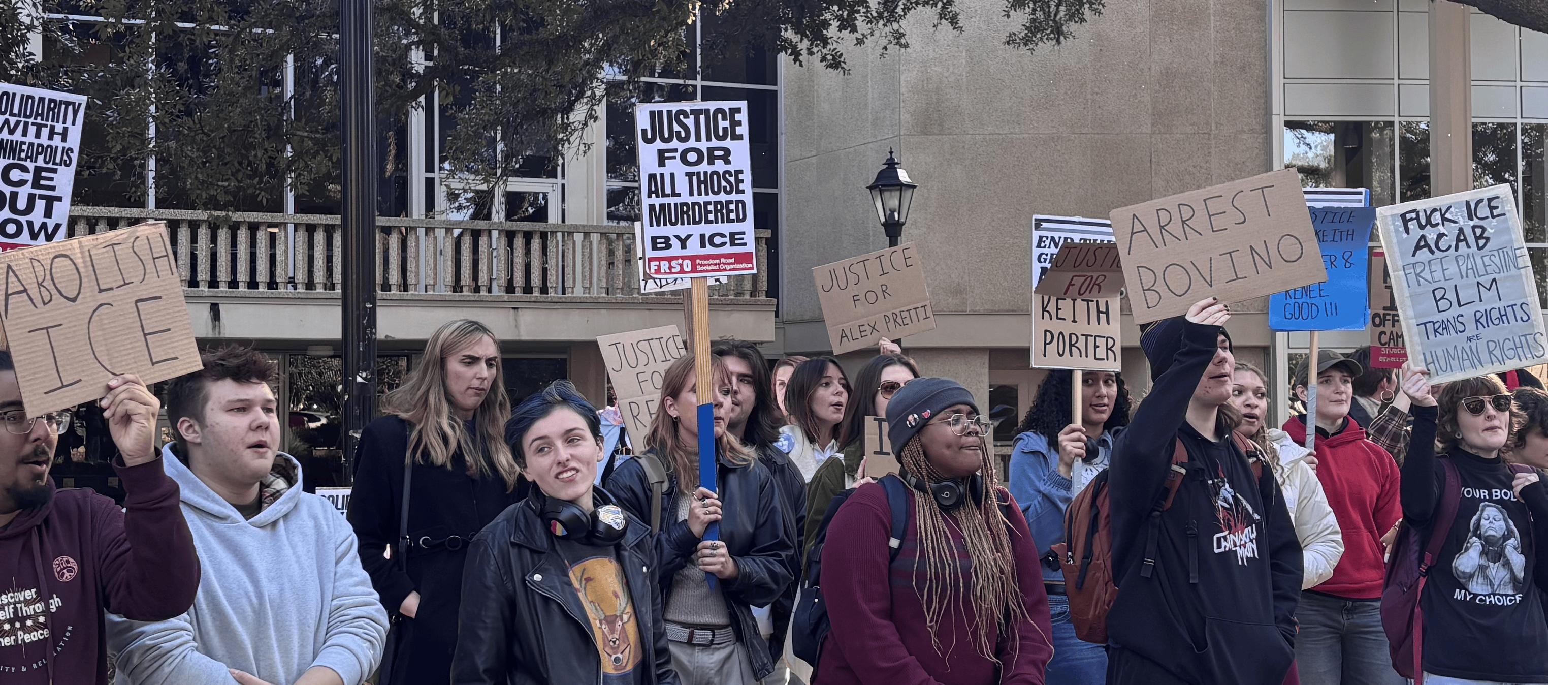 LSU’s Students for a Democratic Society held an “ICE Out of Everywhere” rally Thursday in Free Speech Alley. It served as a response to the killings of U.S. citizens by ICE agents.