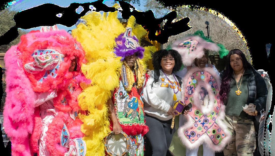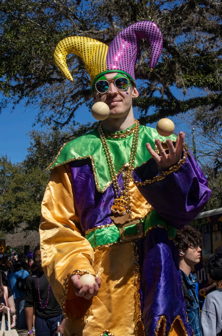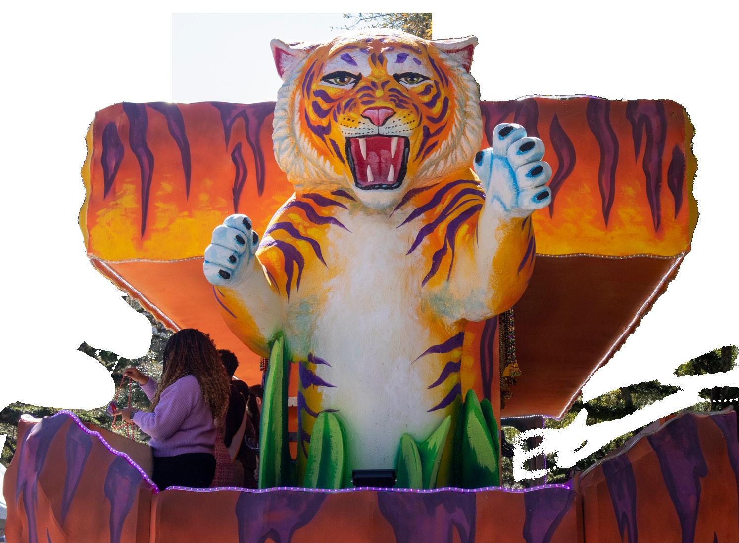 unique and out-of-the-box experience. Parade-goers can be seen wearing lots of pink, glitter, fur and many more crazy style choices to stand out in the crowd. Pink has become the official color of the parade because of the iconic color of the flamingo. Pink decorations and costumes are always common to see on the Saturday before Mardi Gras, making Baton Rouge natives stray away from the typical purple, green and gold.