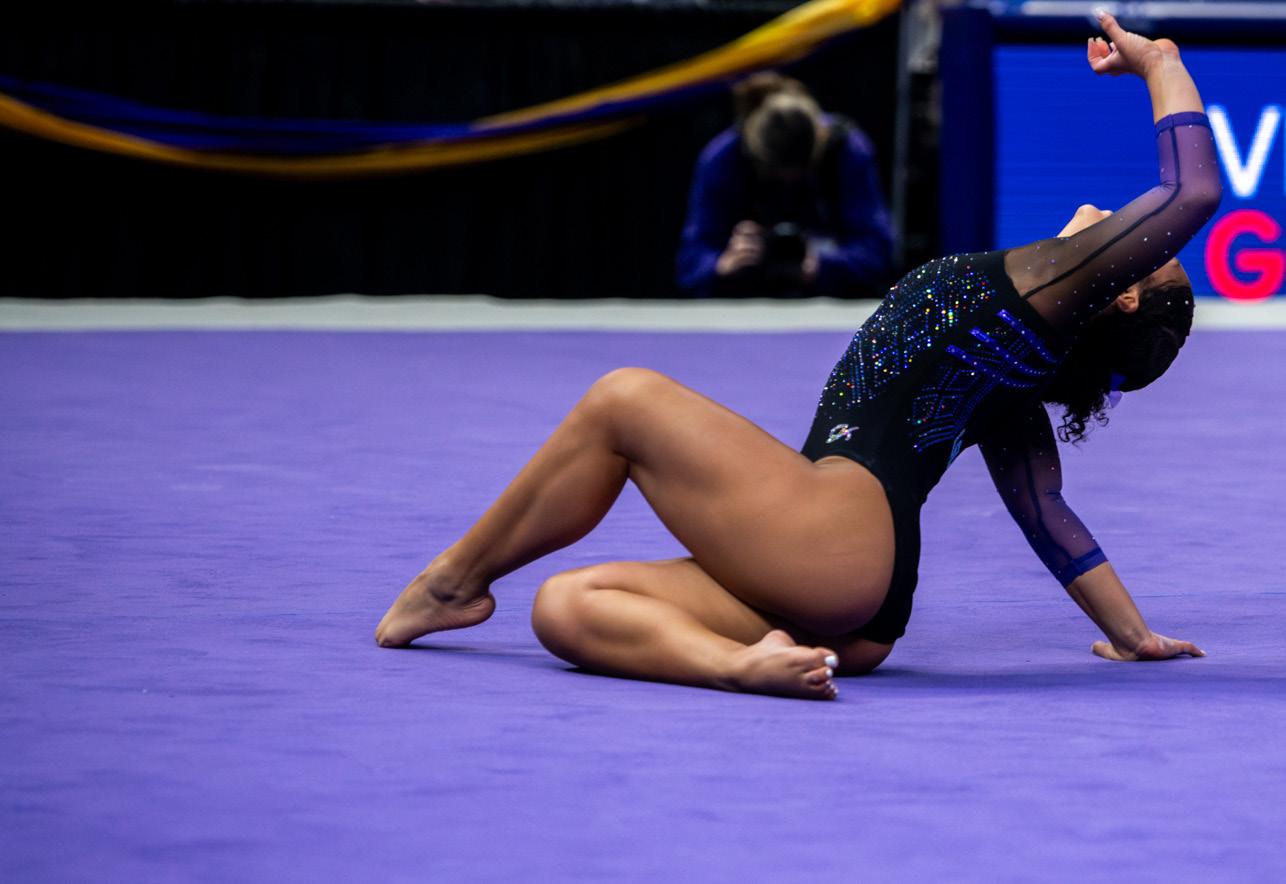 LSU then found its way to the floor with a 148.375, in the lead against Arkansas’ 147.600.