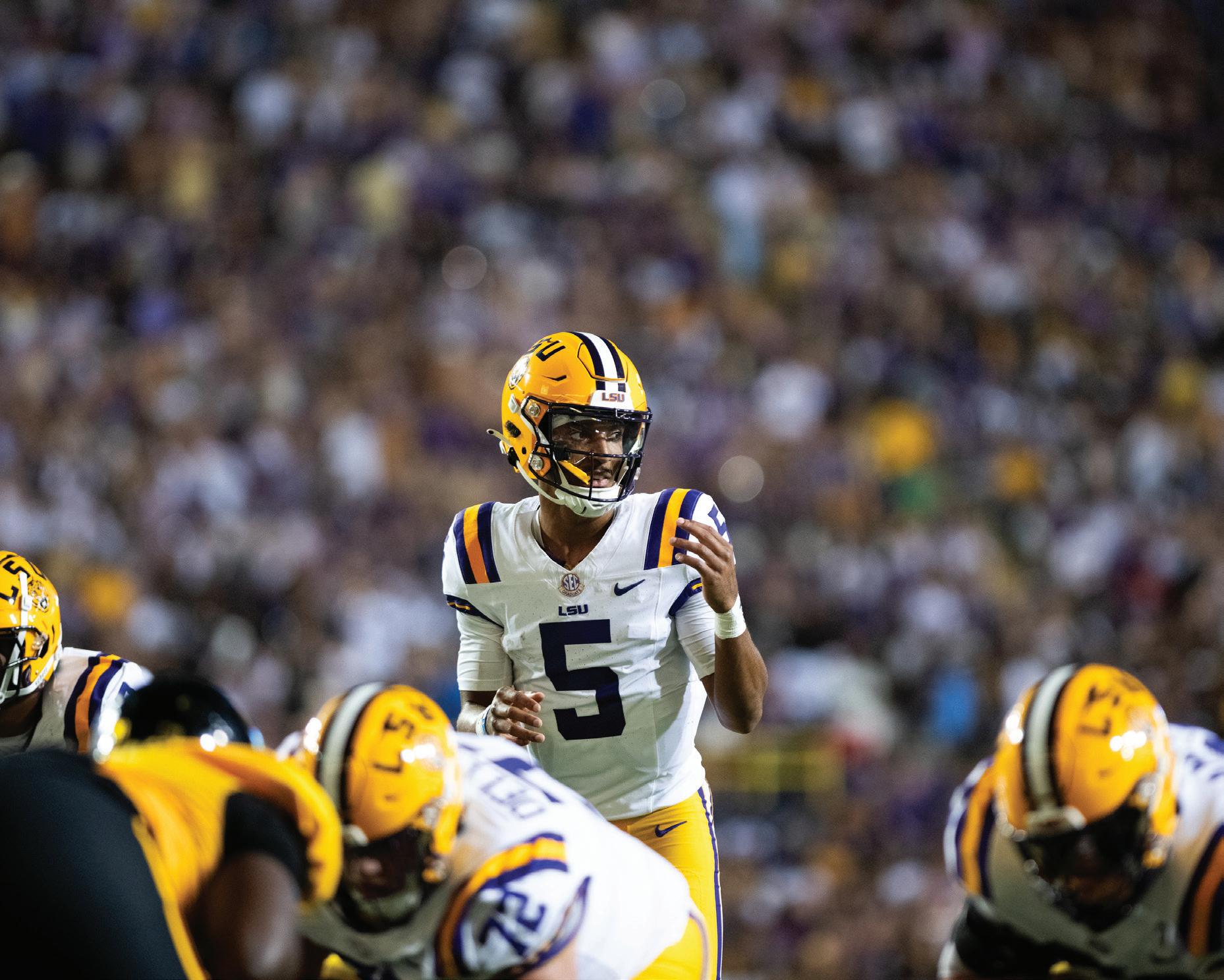 noticeably in pain on the sidelines, but came out for LSU’s next drive and ran for a 35-yard touchdown. He followed that up with what ended up being the gamewinning touchdown drive, where he had a 31-yard run that set up a 29-yard passing touchdown to Malik Nabers.
